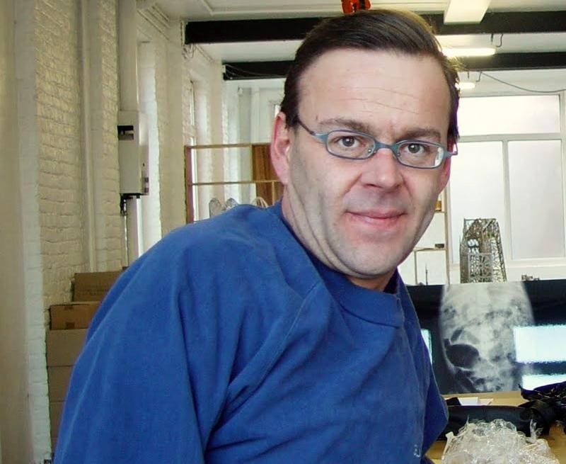 -La plupart de mes assistants ont une formation d’architecte. A l’école, les profs leur ont dit que ce n’était plus important de connaître le gothique. Bizarre ! Les architectes de l’époque étaient les interlocuteurs des grands rois. Les meilleurs artistes de la Renaissance travaillaient pour les puissants de leur temps. Léonard de Vinci a même été, en quelque sorte, au service du pentagone de l’époque ! Mais je m’emballe. Ce que je fais est plus modeste et n’a rien à voir avec les cathédrales. C’est tout à l’ordinateur, au laser, en inox. Ce ne sont pas ou pas encore des bâtiments. Ce sont des sculptures, des maquettes. Il est difficile de dire ce que j’en pense moi-même. Si vous revenez demain, je vous l’expliquerais autrement avec la même vérité dans la voix. Je ne sais pas prendre position sur le caractère moderne ou non du gothique aujourd’hui. En voyant ce que je fais, les gens me disent quelle créativité ! Mais je dois détruire leur enthousiasme en répondant que je doute de tout.