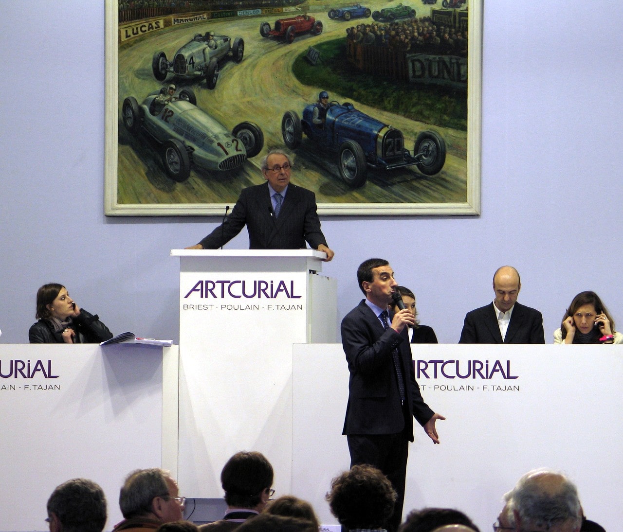 – C’est un signe du destin, cette voiture était pour Madame, ici devant moi…, un cadeau d’amour de Monsieur pour Madame… J’espère que c’est votre Mari ? Votre amant ? Non ? Vous riez ? Votre mari ? Oui ! Que d’amour… Trois fois, j’adjuge, 620.000 euros pour Monsieur ici devant moi. Merci Monsieur, elle est à vous Madame, elle est vôtre, merveilleux, c’est le jour de l’amour… Pas le vôtre Matthieu, quoique…