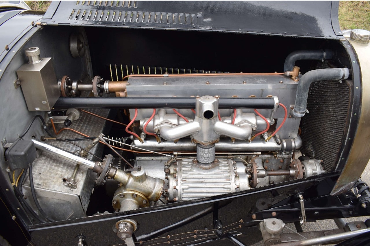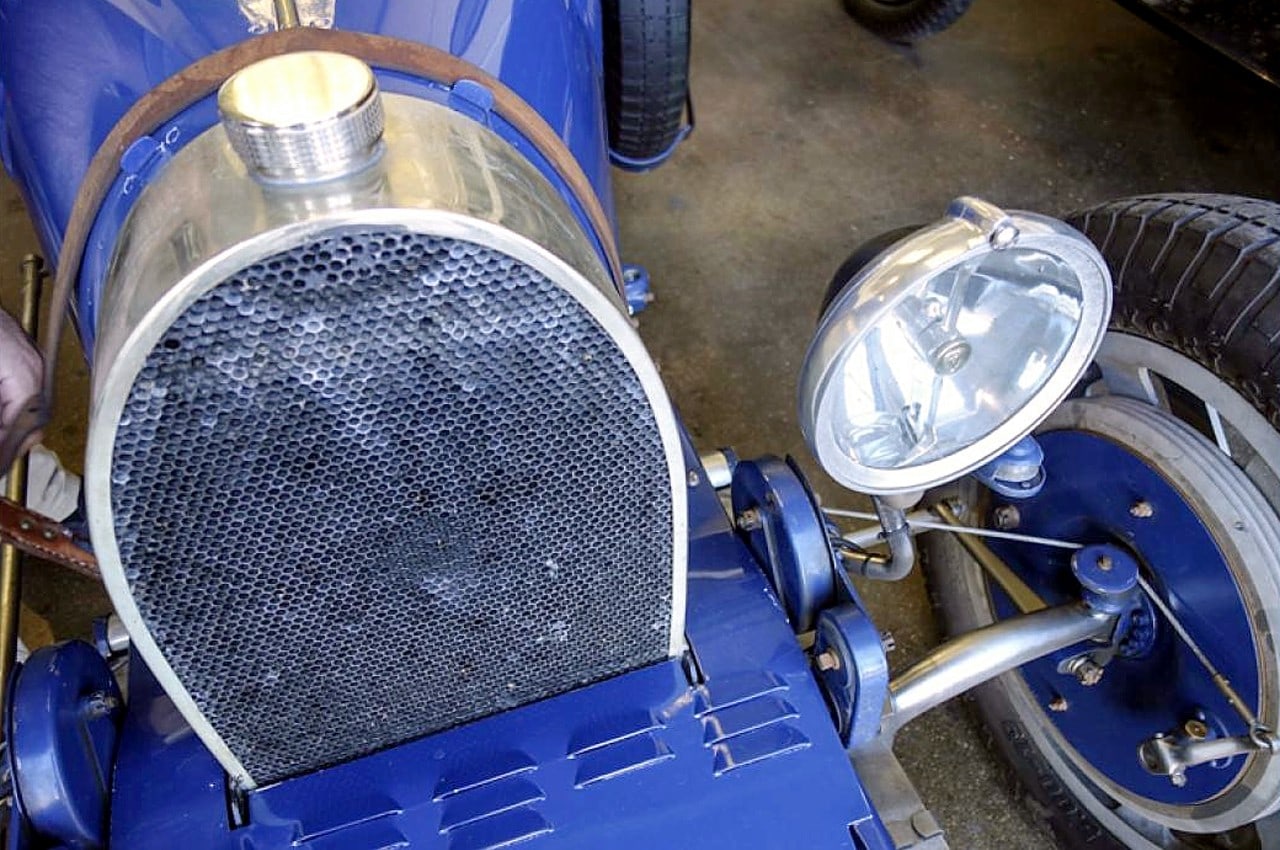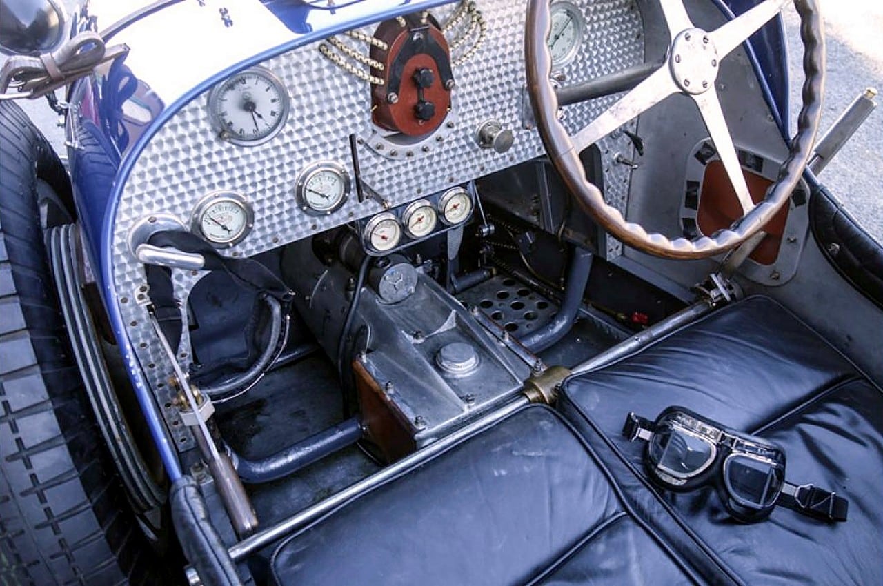 – Bien…, vous savez, nous sommes ici entre-nous, je puis me permettre de vous narrer quelques anecdotes…, cette voiture, c’est toute ma jeunesse, elle est lointaine certes, mais le poids des ans l’emporte en valeur…, à cette époque j’aimais déambuler sur les Champs à son volant… Il s’agissait d’un torpédo 3/4 places, Grand Sport, de bonne facture, la carrosserie a été copiée sur une très bonne Type 43, non restaurée et qui avait été découverte dans l’Aisne dans les années 1970. Elle avait séjourné quelque temps chez Pierre Prieur, de Paris, qui avait pu en prendre les cotes. Il avait fait réaliser une carrosserie qu’il destinait à une voiture qu’il venait de trouver, en pièces et en châssis nu. Mais la caisse copiée ne fut jamais montée par Pierre Prieur qui a fini par la céder, avec les pièces dont il disposait, à un collectionneur de la région de Tours. Ce dernier a vendu la carrosserie un peu plus tard à un collectionneur cannois. La planche de bord est neuve. Tous les instruments sont neufs mais vieillis pour être quasi-conformes au modèle, mais certains sont anciens. C’est une œuvre-d’art !