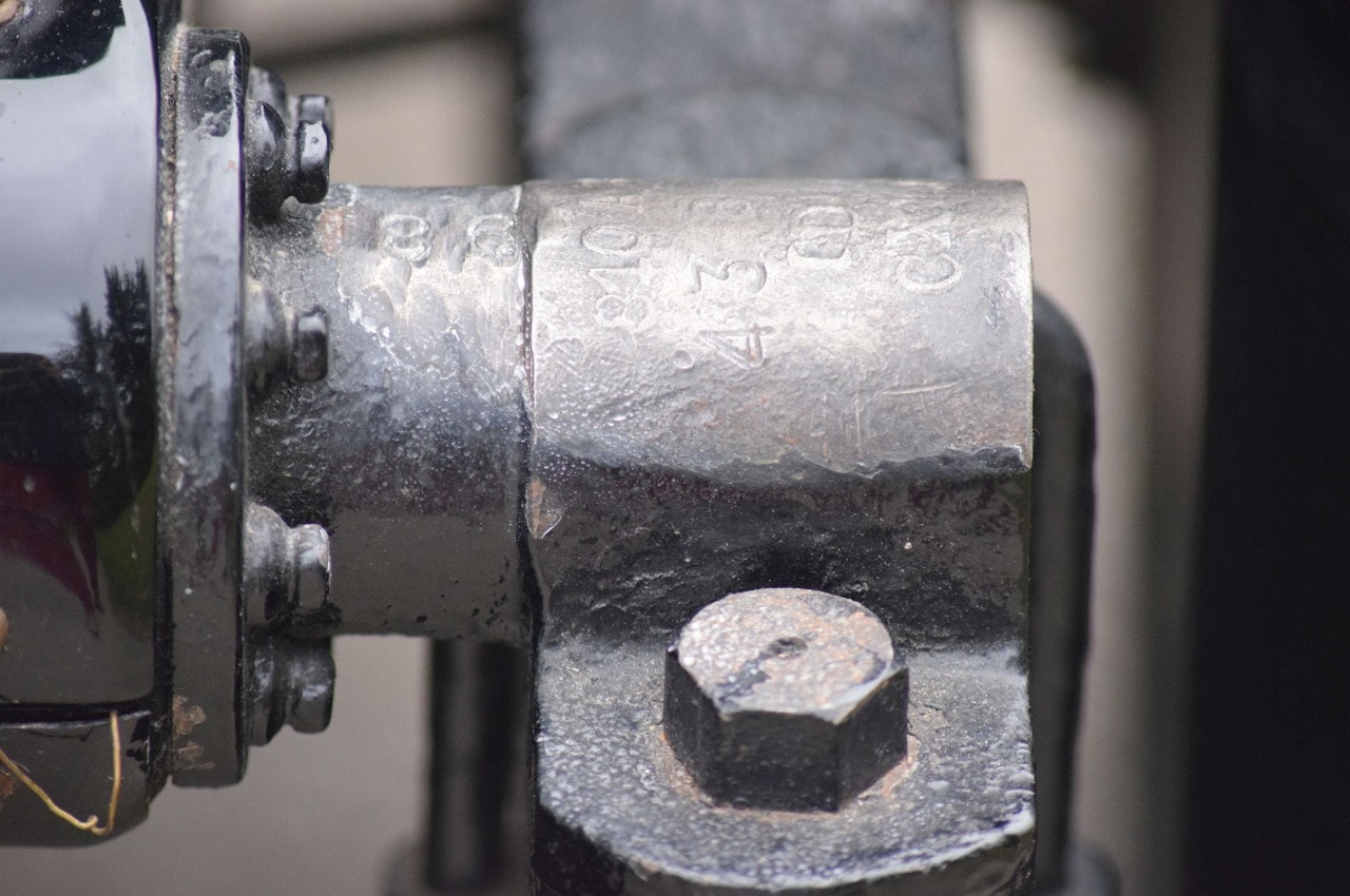 – Train avant : il est numéroté 167. C’est un essieu de tourisme, conforme au modèle 43 ou 44, mais son numéro indique qu’il ne peut s’agir d’un essieu d’origine de Type 43, dont moins de 160 exemplaires ont été construits. Par conséquent, il s’agit probablement d’un essieu de Type 44.