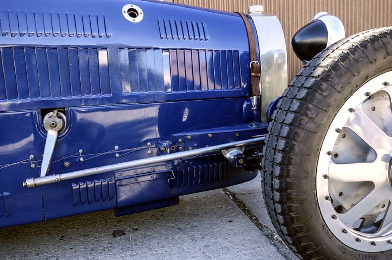 – Roues : elles sont neuves du type Grand Prix, conformes au modèle de 1930, en une pièce d’aluminium coulé, telle qu’il était monté sur les dernières Type 43 vendues.