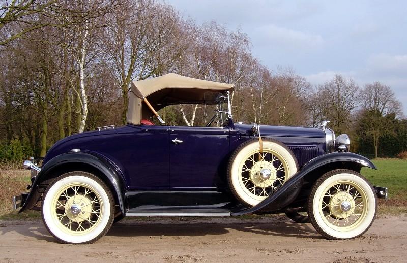 En 1927 Ford décida de remplacer la mythique Ford T et lança la Ford A, une quatre cylindres de 3,3 litres, à soupapes latérales, avec une boîte trois vitesses, des freins sur les quatre roues, une robe imitée de celle de la Lincoln (firme dirigée par Ford depuis 1922)… et pour la première fois d’un pare-brise incassable en série.