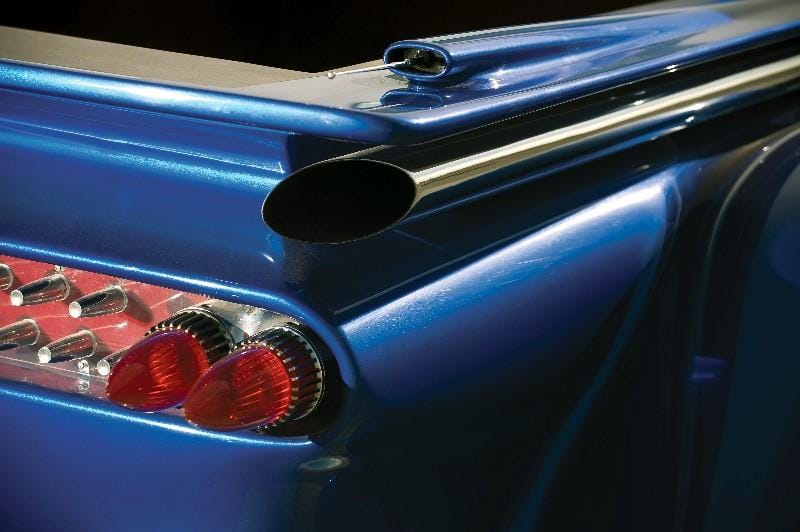 – Lit de bed of camionnette être construit sur mesure, avec utilisant panneaux custode ’59 Chevrolet, et plus partie arrière évasée arborait un quatuor de ’58 calandre Cadillac en dents et 59 feux arrière bullet Cadillac. Les ailes arrière ont été à l’origine d’un modèle ’29, mais être pivoté de 180 degrés et moulé en flottant pour renforcer illusion réelle de vitesse, Vavavoum… Bumperettes Wraparound, antennes radio jumeaux montés dans boîtiers-box de tubes moulés d’échappement, et paire double de tubes d’échappement évasés plus du lit de ramassage. Le revêtement sol lit être acajou of Philippines, plus tonneau-cover achevé pour arrière.
