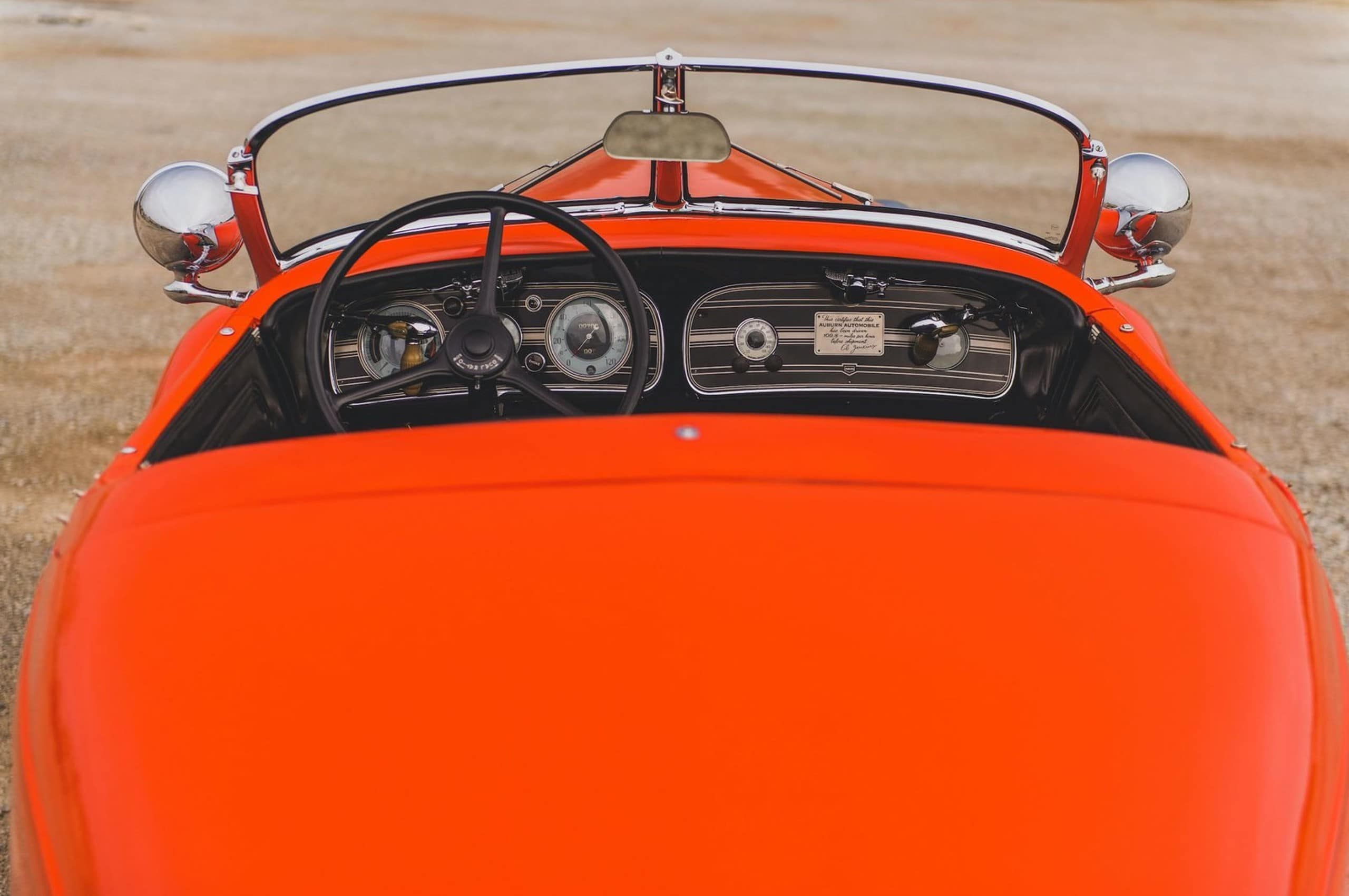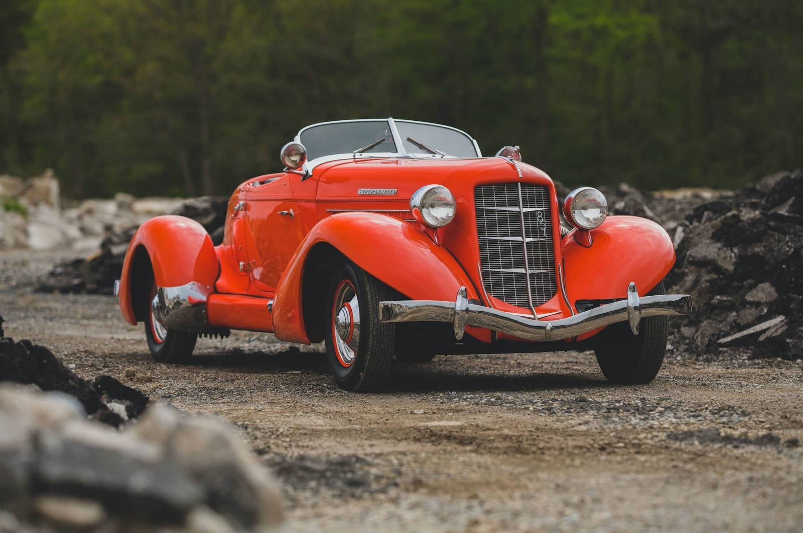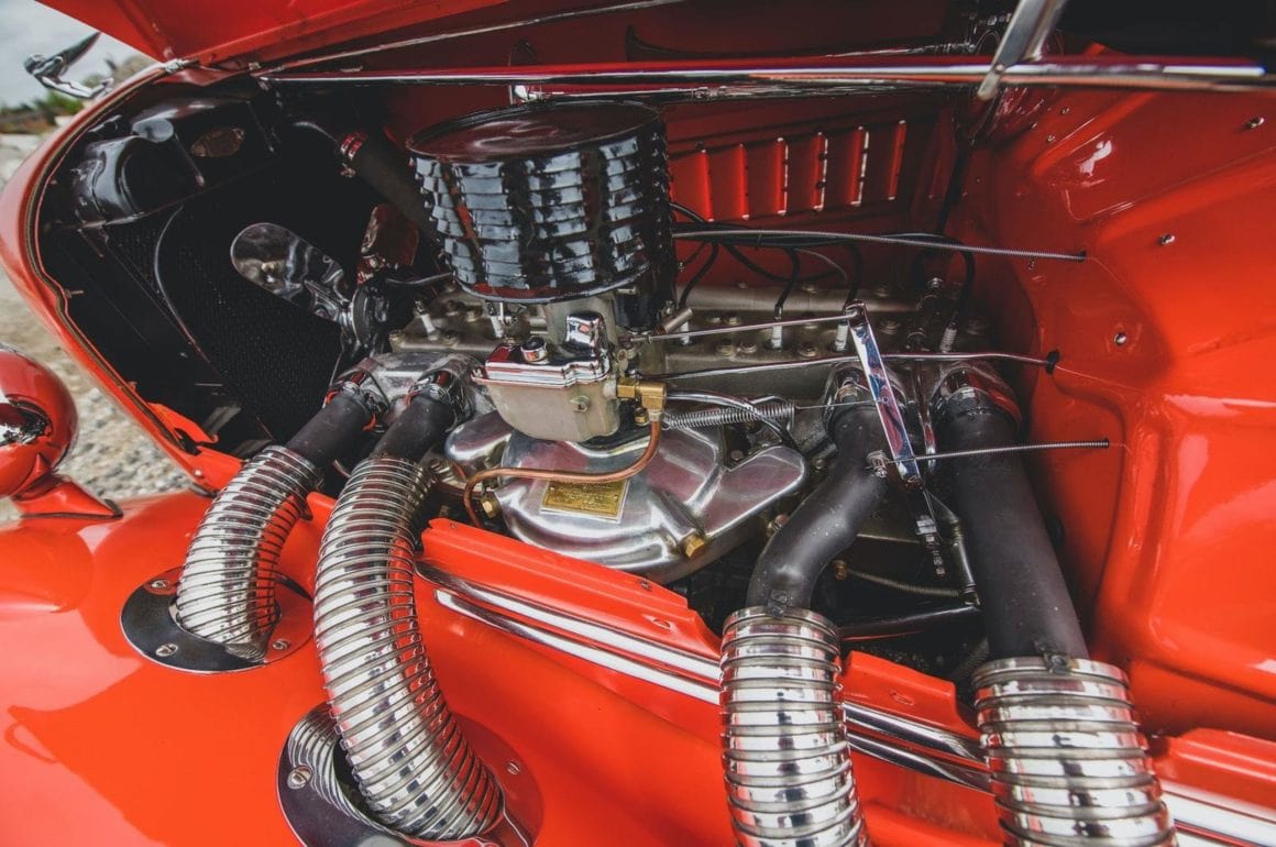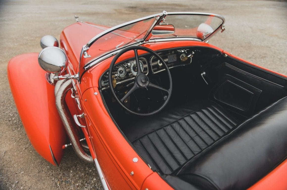 Le long capot abritant le 8 cylindres en ligne est surmonté par une mascotte qui n’est pas sans rappeler la Spirit Of Ecstasy de Rolls-Royce. La principale innovation de l’Auburn Speedster réside dans sa transmission : en effet, le conducteur a le choix entre des rapports courts ou longs, par le biais d’un levier. Ceci additionné à la boîte conventionnelle à trois vitesses fait de l’Auburn Speedster la première voiture américaine dotée de 6 vitesses.
