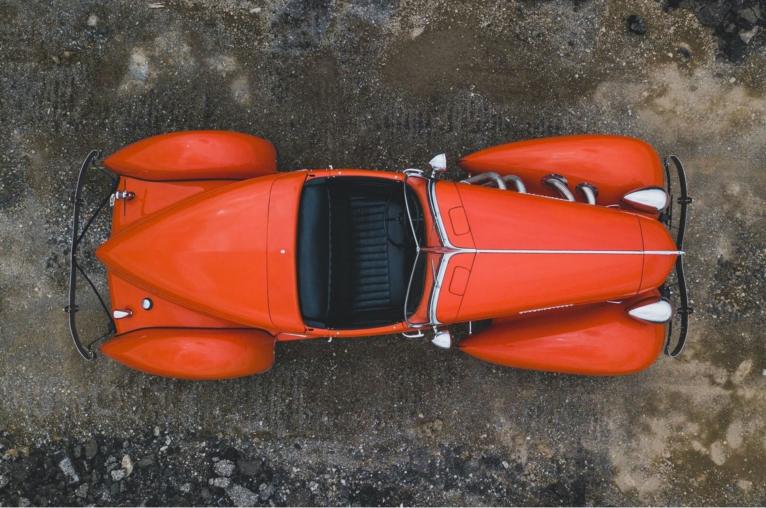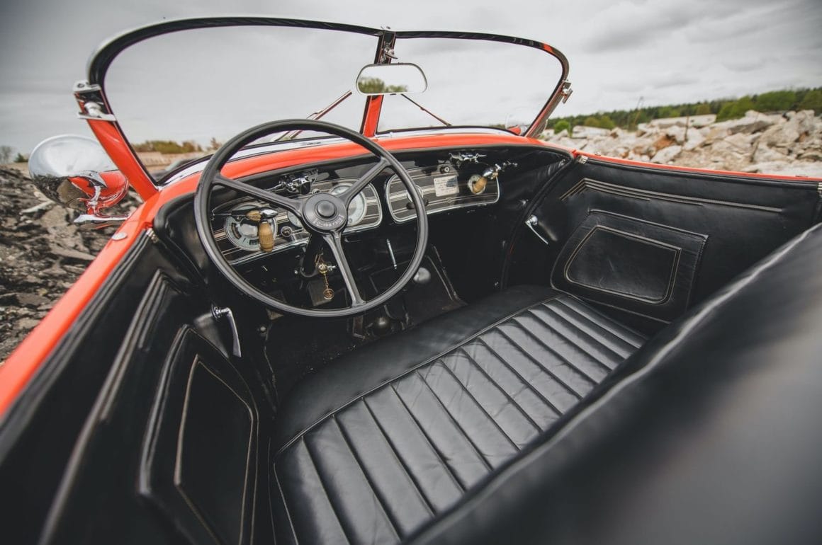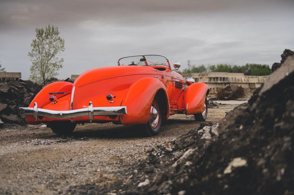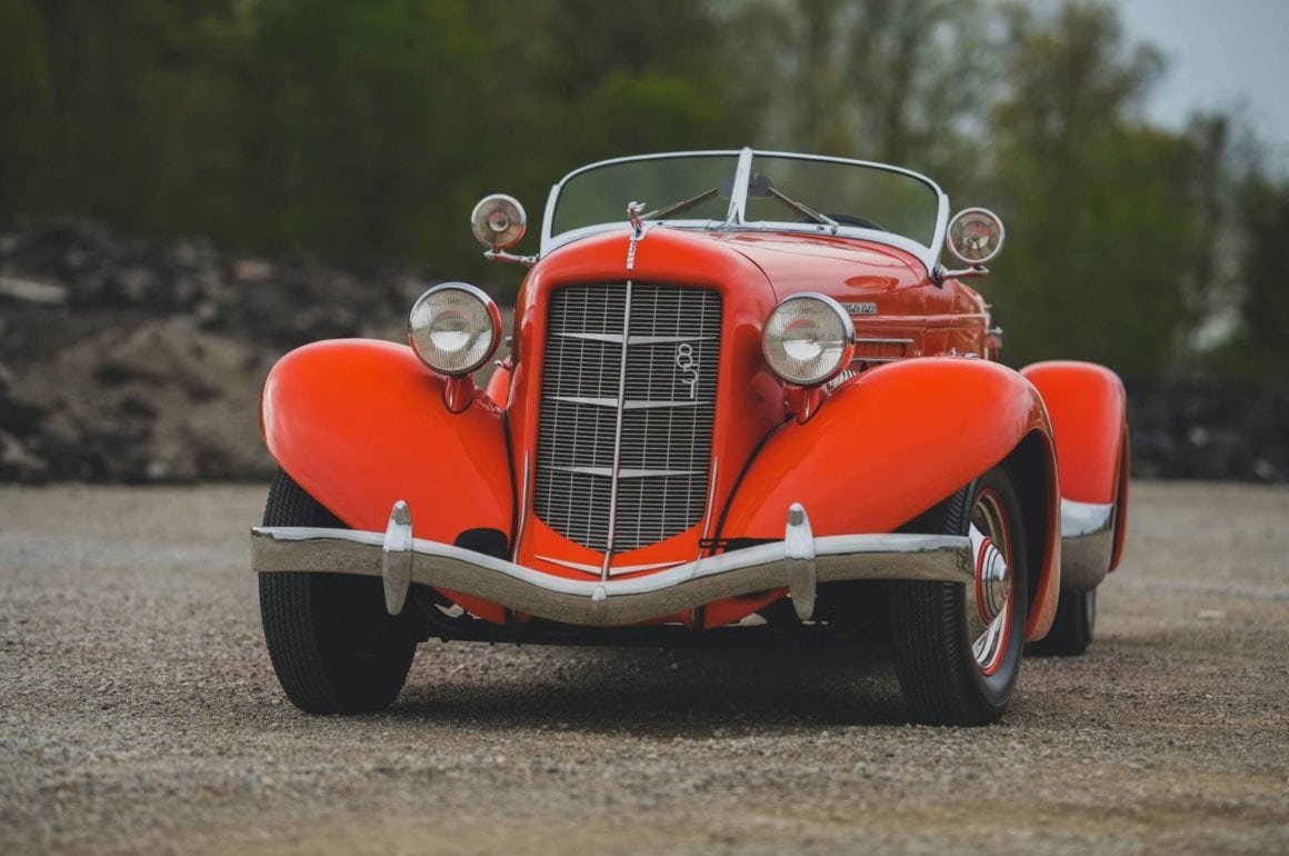 Le long capot abritant le 8 cylindres en ligne est surmonté par une mascotte qui n’est pas sans rappeler la Spirit Of Ecstasy de Rolls-Royce. La principale innovation de l’Auburn Speedster réside dans sa transmission : en effet, le conducteur a le choix entre des rapports courts ou longs, par le biais d’un levier. Ceci additionné à la boîte conventionnelle à trois vitesses fait de l’Auburn Speedster la première voiture américaine dotée de 6 vitesses.