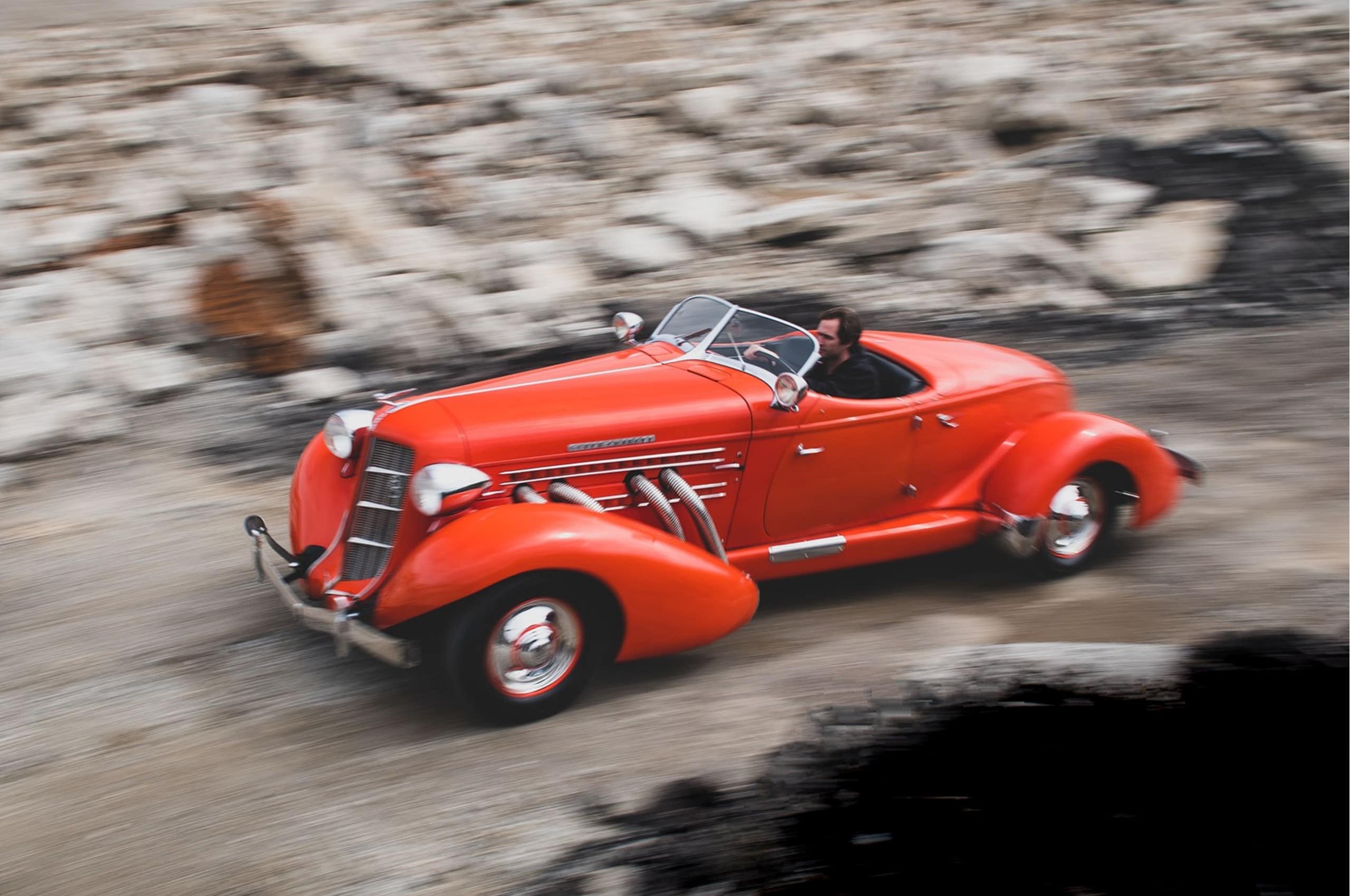 Un jour, une nouvelle fit grand bruit, la fameuse Auburn traversait l’Atlantique, elle avait été inscrite pour une vente aux enchères Sotheby’s à l’occasion du concours d’élégance de Pebble-Beach ! Un matin de tempête, JeffWayne, sortant d’un lourd sommeil, descendit comme un maniaque de sa chambre avec une mallette remplie de billets de 1.000 US$ et, en toute hâte, grimpa dans sa Jeep Grand Cherokee puis s’élança en bondissant à travers le labyrinthe de la forêt entourant sa propriété, en direction de Pebble-Beach. Un événement aussi peu commun ne pouvait qu’attirer particulièrement l’attention ; et son retour fut attendu avec une intense anxiété par tous ses proches.