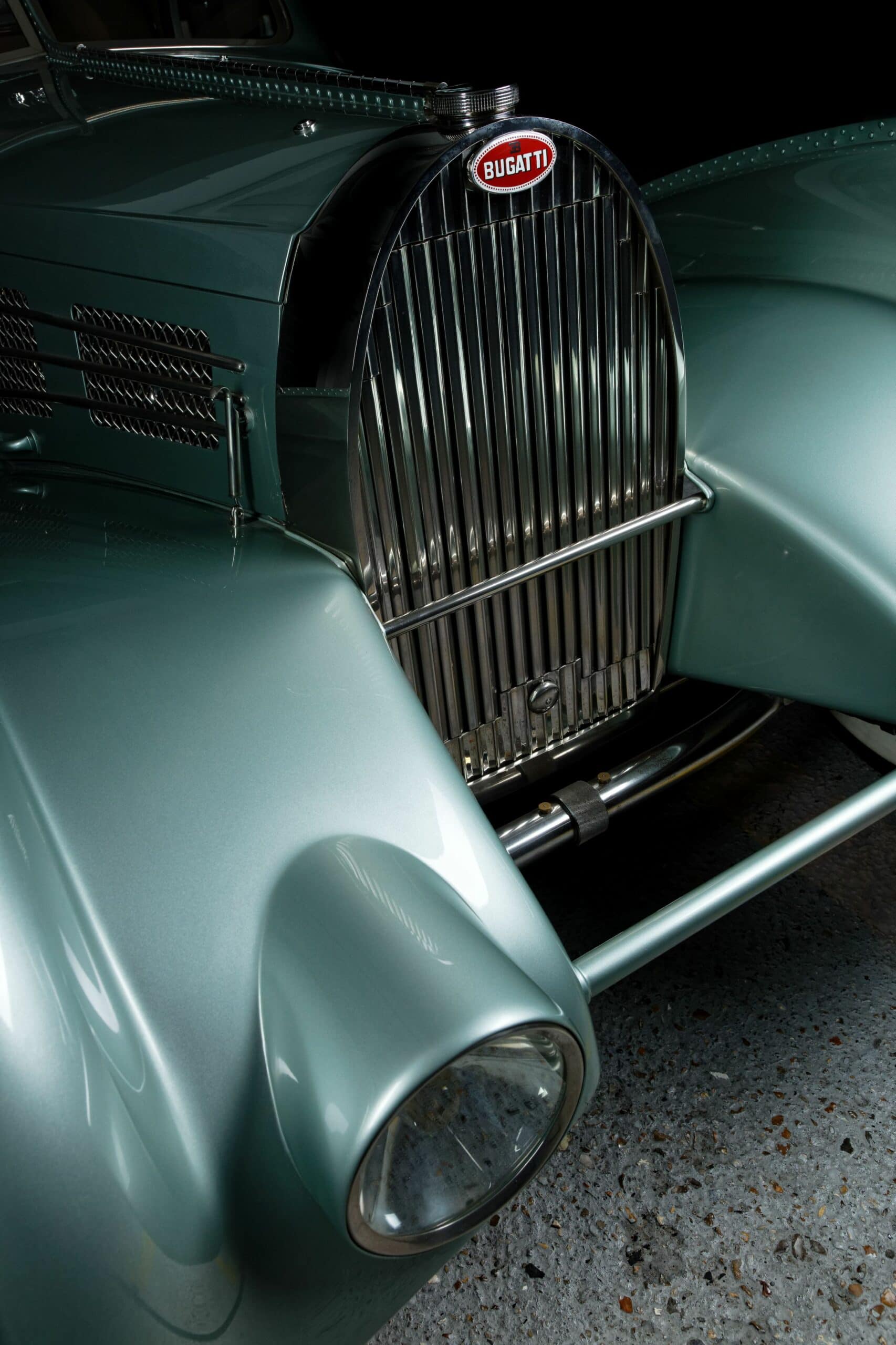 DESCRIPTIF CATALOGUE : Au Salon de Paris qui ouvre ses portes le 4 octobre 1935, Bugatti dévoile une des voitures les plus spectaculaires de son époque, voire de tous les temps. Dessinée par Jean Bugatti et dénommée “Type 57 Coupé Spécial”, elle présente une forme futuriste inspirée de la vogue Art Déco, dont le long capot se termine sur un habitacle ramassé dont le profilage s’inspire d’un cockpit d’avion.