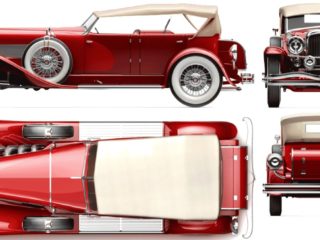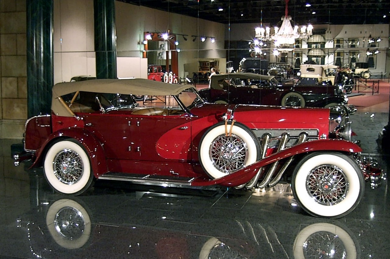 – Le modèle devient très rapidement champion du luxe dans le marché automobile…, le carrossier LeBaron réalise alors la Dual cowl phaéton comme étant le modèle le plus luxueux de toute la gamme…, la firme LeBaron fondée en 1920 est basée à new-York…, initialement elle ne réalisait que des études de style pour ses clients qui se chargeaient de la fabrication…, une situation qui change en 1927 : LeBaron devient constructeur lui-même après une association avec le carrossier Briggs…Mais la concurrence est sévère…, d’autres marques sont également à la recherche de la perfection automobile : Cadillac et Packard aux Etats-Unis…, Rolls-Royce, Hispano-Suiza et Bugatti en Europe…, tous sont dans la course à la puissance, à la vitesse et au luxe des carrosseries…, rien n’est laissé au hasard : Duesenberg fait rouler ses châssis 100 miles sur circuit avant de les livrer aux carrossiers !