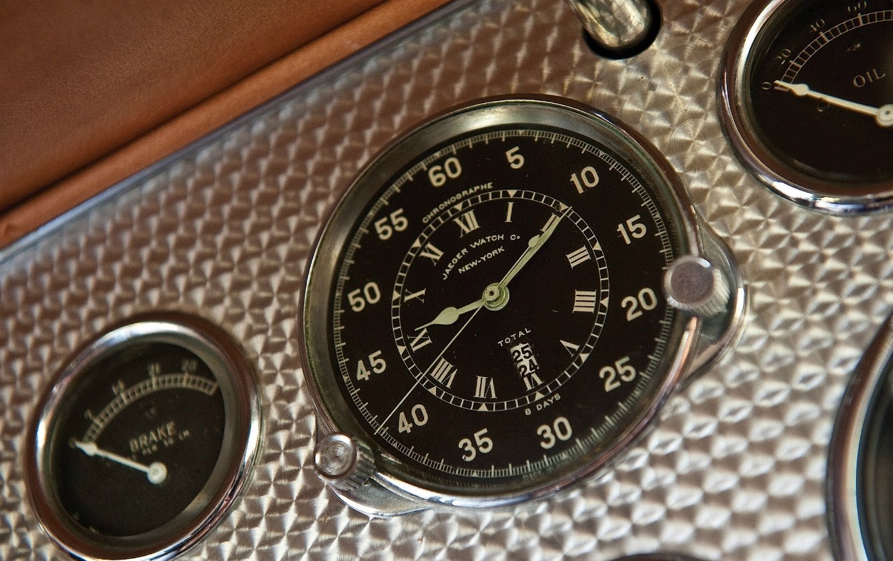 – “Bonjour, j’espérais en avoir terminé hier soir…, mais bon…, c’est comme ça…, pour midi ce sera terminé, j’en étais je ne sais plus ou… Ah ! Oui, euhhhh..; Voilà ! Des célèbres carrossiers étrangers ont porté également leur signature sur la Model J : Figoni &Falaschi, Saoutchik, Letourneur & Marchand et Franay en France…, Gurney Nutting en Angleterre… et Castagna en Italie…, inutile de dire que pour une Duesenberg, qu’importait le prix…, alors qu’une Cadillac valait 7.000 dollars en 1931, le châssis nu du Model J coûtait 8.500, il fallait ensuite régler la carrosserie qui était au minimum du même prix. Les caractéristiques techniques du Model J sont hors du commun pour l’époque, la suspension est à ressorts à lames à l’avant comme à l’arrière et le freinage dispose d’un système hydraulique…, le huit-cylindres de 6.9 litres revendique 265 chevaux…, ce moteur, considéré comme le meilleur moteur du monde, est accouplé à une boîte à trois rapports et a un double arbre à cames en tête et trente-deux soupapes…, fabriqué par Lycoming, l’une des sociétés de l’empire industriel de Cord, ce moteur très avancé pour son temps dispose du double de la puissance de n’importe quel moteur américain du moment…, malgré son poids dépassant les deux tonnes, le Model J atteint des records de 190 km/h. Le Model J est équipée à bord d’un panel d’instruments très complet : compteur gradué jusqu’à 240, jauge de carburant, indicateur de température d’eau, de pression des freins, ampèremètre, pression d’huile, compte-tours, chronomètre, et un témoin de lubrification du châssis…., ce panel est considéré comme le premier ordinateur de bord de série…, un petit système vient de la pompe à huile qui ouvre des clapets pour amener le lubrifiant sur les parties à graisser tous les 75 miles…, une lampe s’allume tous les 700 miles pour prévenir que le changement d’huile est nécessaire et un autre signal indique tous les 1400 miles qu’il est temps de recharger la batterie”…