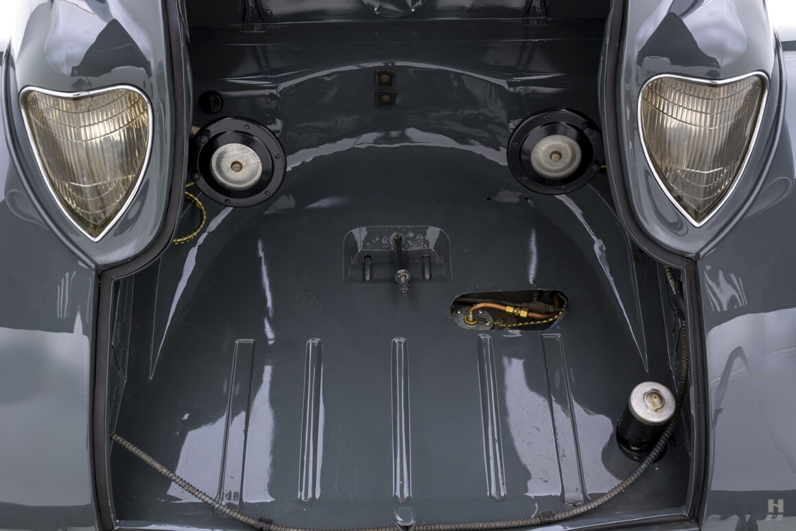 L’extérieur se présente extrêmement bien, continuant de mettre en valeur le savoir-faire de précision de la société Budd Manufacturing. L’intérieur est lui aussi magnifiquement conservé, reflétant l’attention portée aux détails et l’innovation. En tant que concept unique, la Hoffman X-8 est le seul exemple connu dans notre univers d’un tel véhicule à moteur X-8 en état de marche, ce qui en fait une pièce de collection exceptionnelle, son histoire, son ingénierie et sa préservation témoignant de l’héritage de Hoffman en tant que visionnaire en matière de conception et d’innovations automobiles.