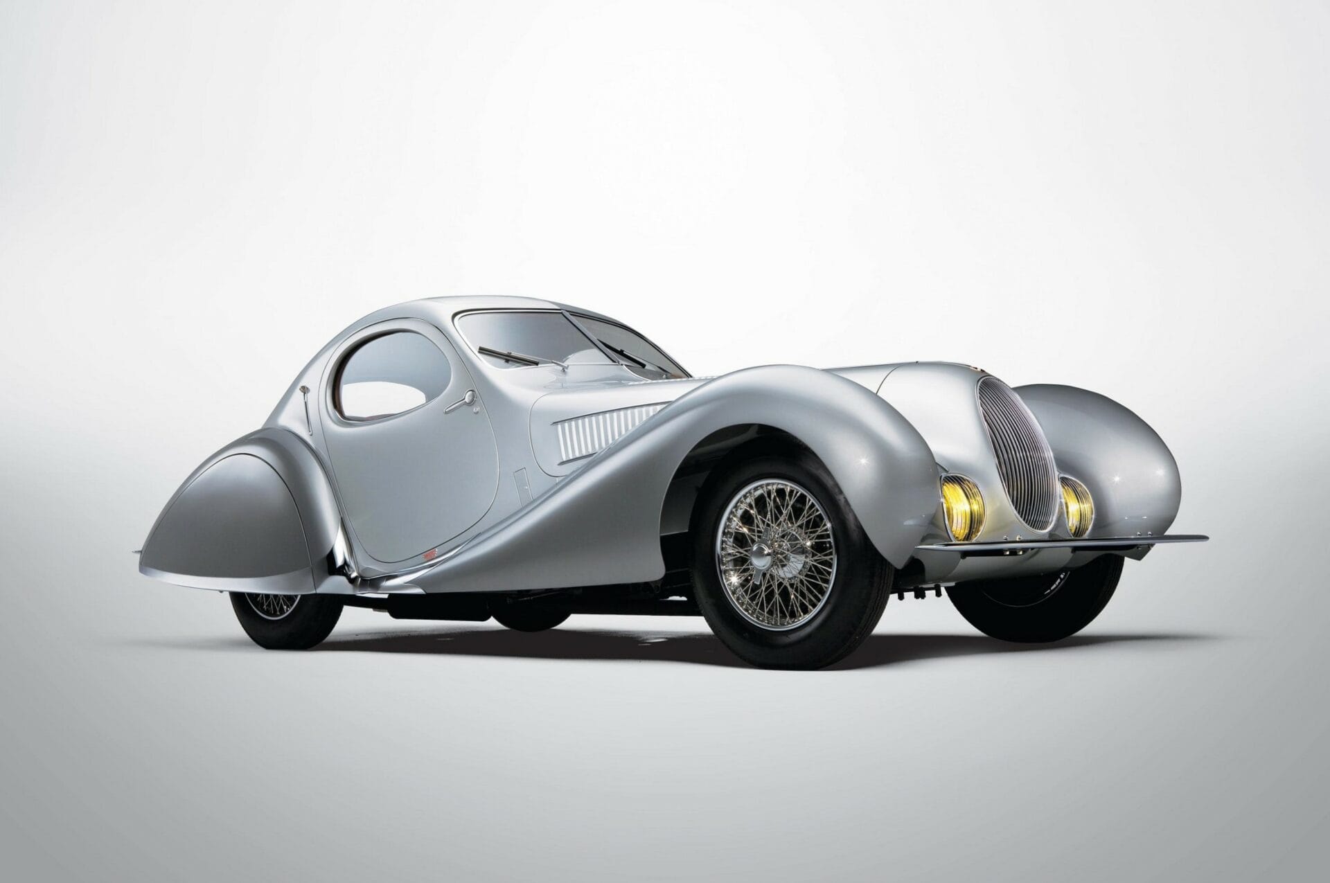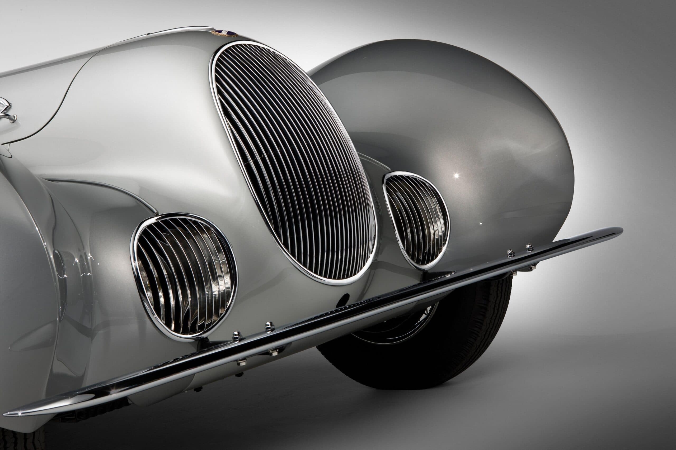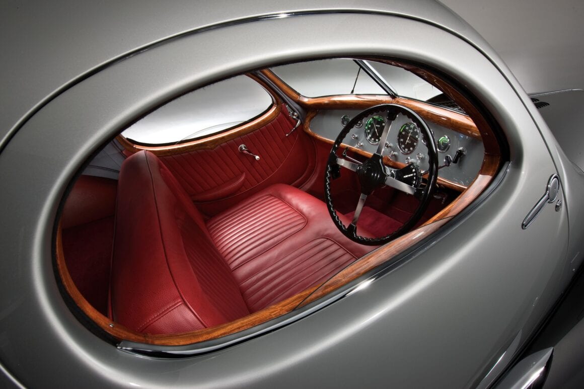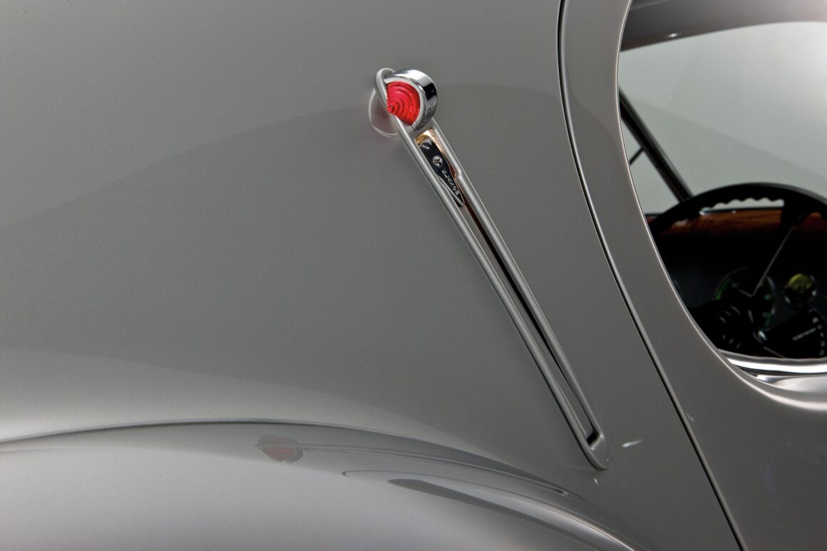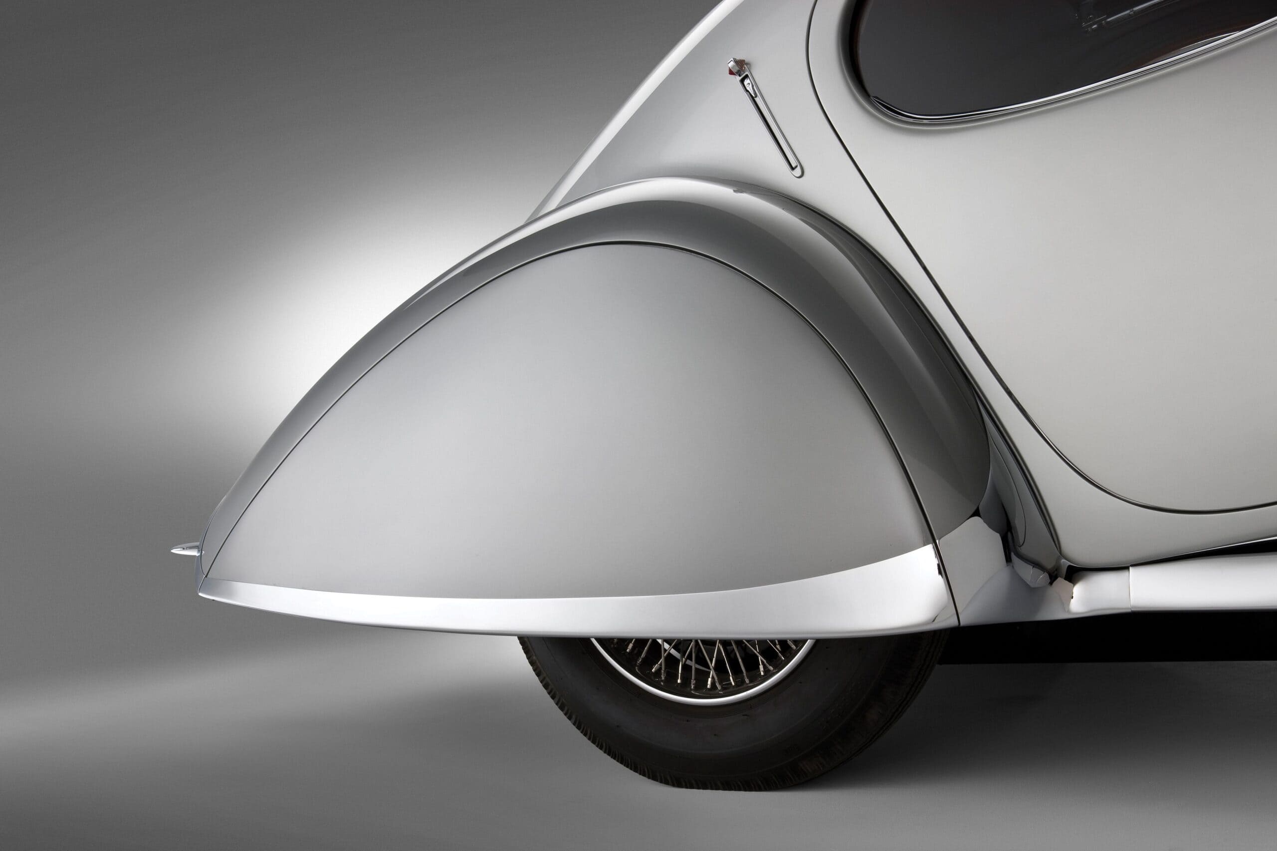 “C’est un dessin de Figoni créé en 1937, Joseph Figoni était l’un des carrossiers les plus brillants de tous les temps et je pense qu’il s’est dit qu’il ne pouvait pas rivaliser avec ce que la nature ou Dieu lui-même avait créé. Au lieu de cela, il devrait simplement regarder autour de lui, découvrir les formes les plus parfaites de l’univers en termes d’élégance et de coefficient de frottement, et les reproduire. La voiture finie est allée à l’Exposition universelle de New York en 1938. Le Bentley Boy, Woolf Barnato l’a ensuite acquis et l’a conservé pendant un certain temps. Il y a une anecdote célèbre sur un gars appelé Freddie McEvoy qui était un homme notoire de sa ville, pilote de course, raconteur d’histoires et homme de dames, qui a fait un pari de bar avec l’héritière Barbara Hutton, qu’il pourrait conduire la voiture de Paris à Cannes en moins de dix heures. Elle lui a parié 10.000 $ qu’il ne pouvait pas, et je ne sais pas comment il aurait payé s’il avait perdu le pari ! Mais il a décollé la nuit seul, a traversé les Alpes sur les routes étroites des années 1930 et y est arrivé en 9 heures 45 minutes ! La conduite de McEvoy a donné le ton à ces voitures, comme quoi elles étaient non seulement rapides et belles, mais qu’elles avaient aussi une réelle endurance. En conduire un exemplaire pendant 9 heures et 45 minutes à plat à travers les Alpes a été un exploit phénoménal”…