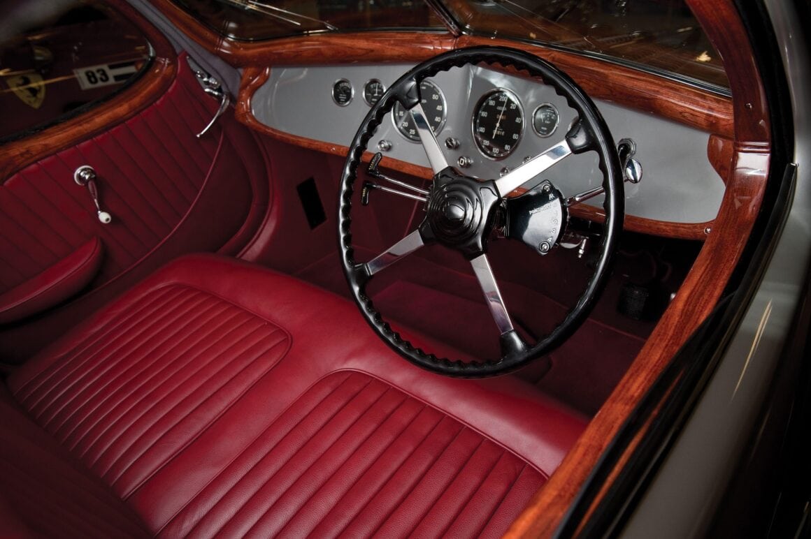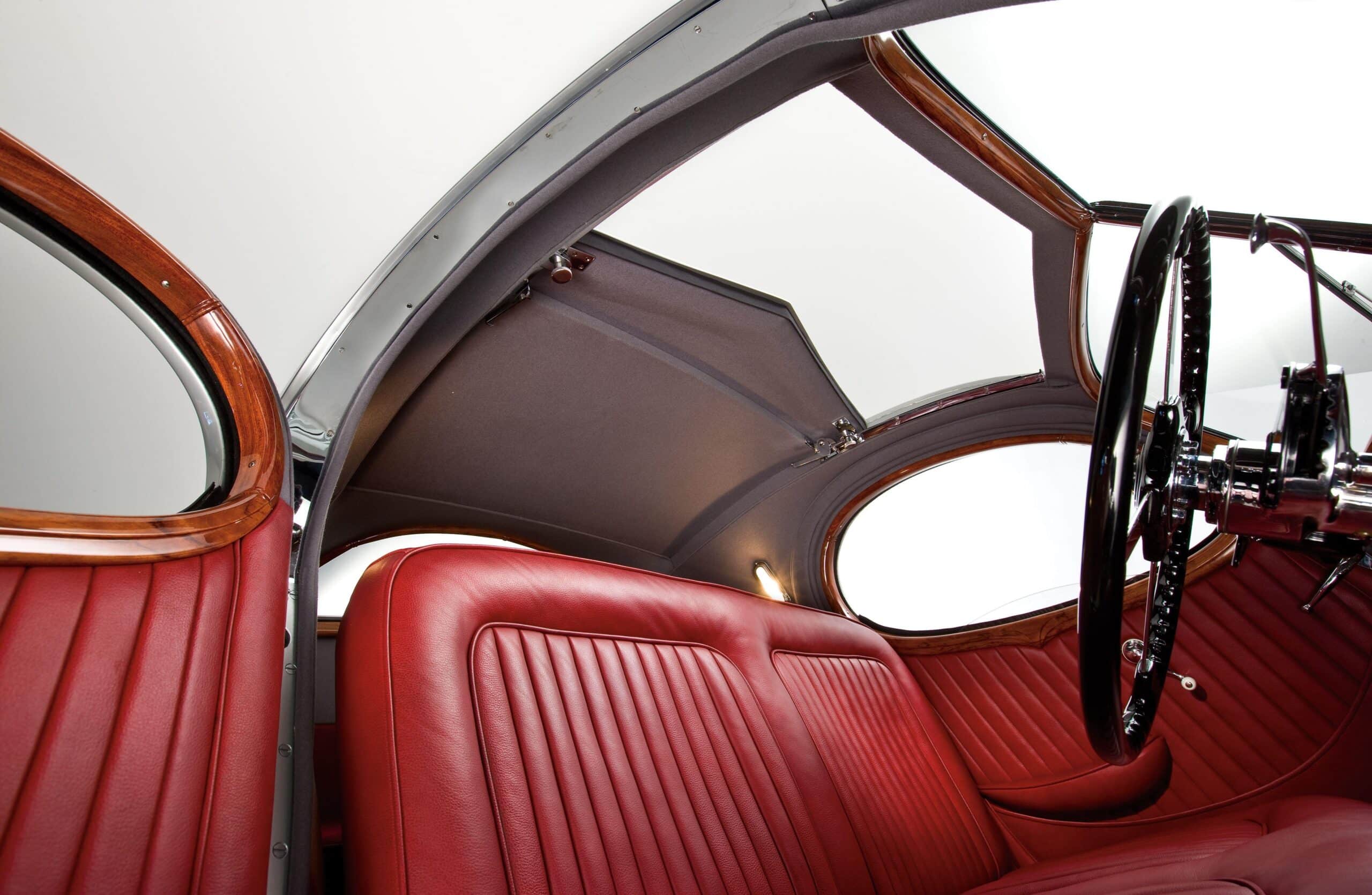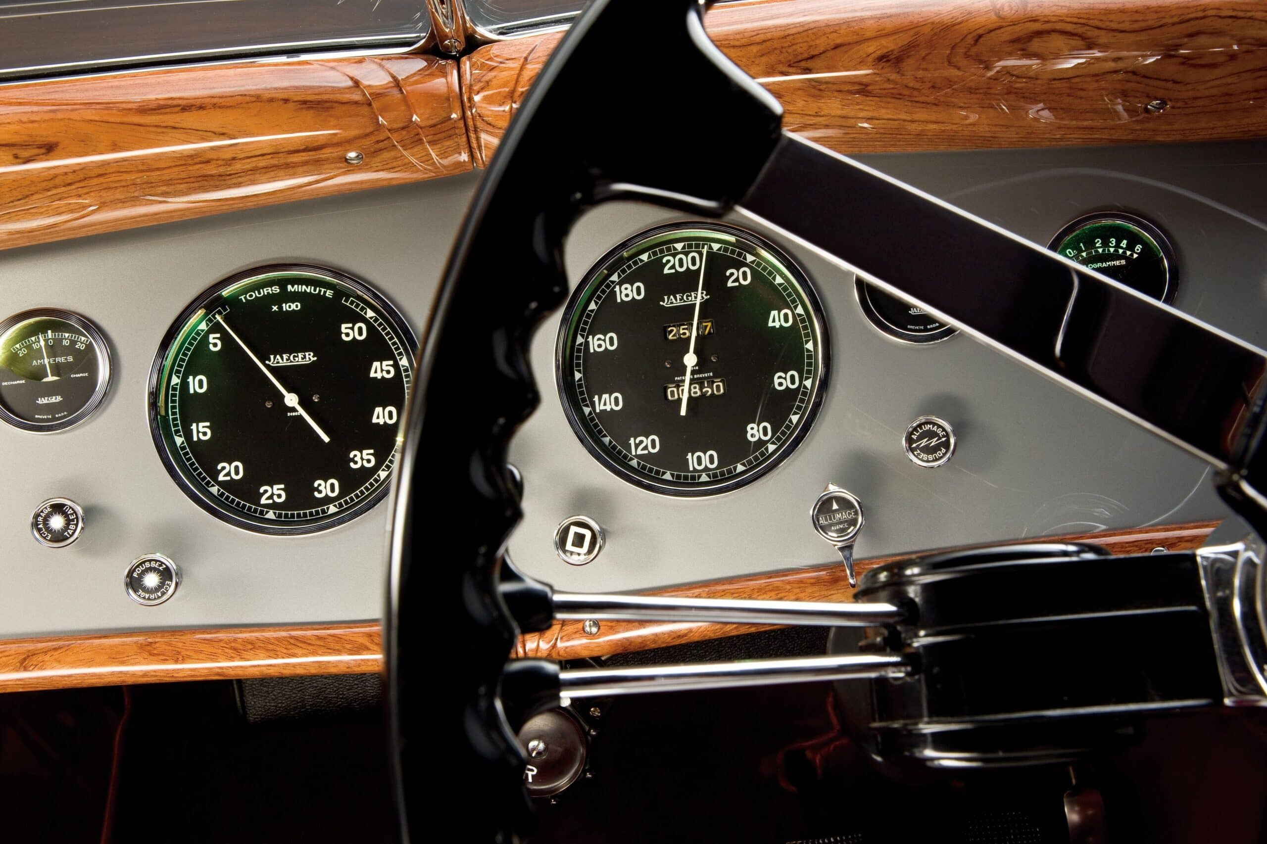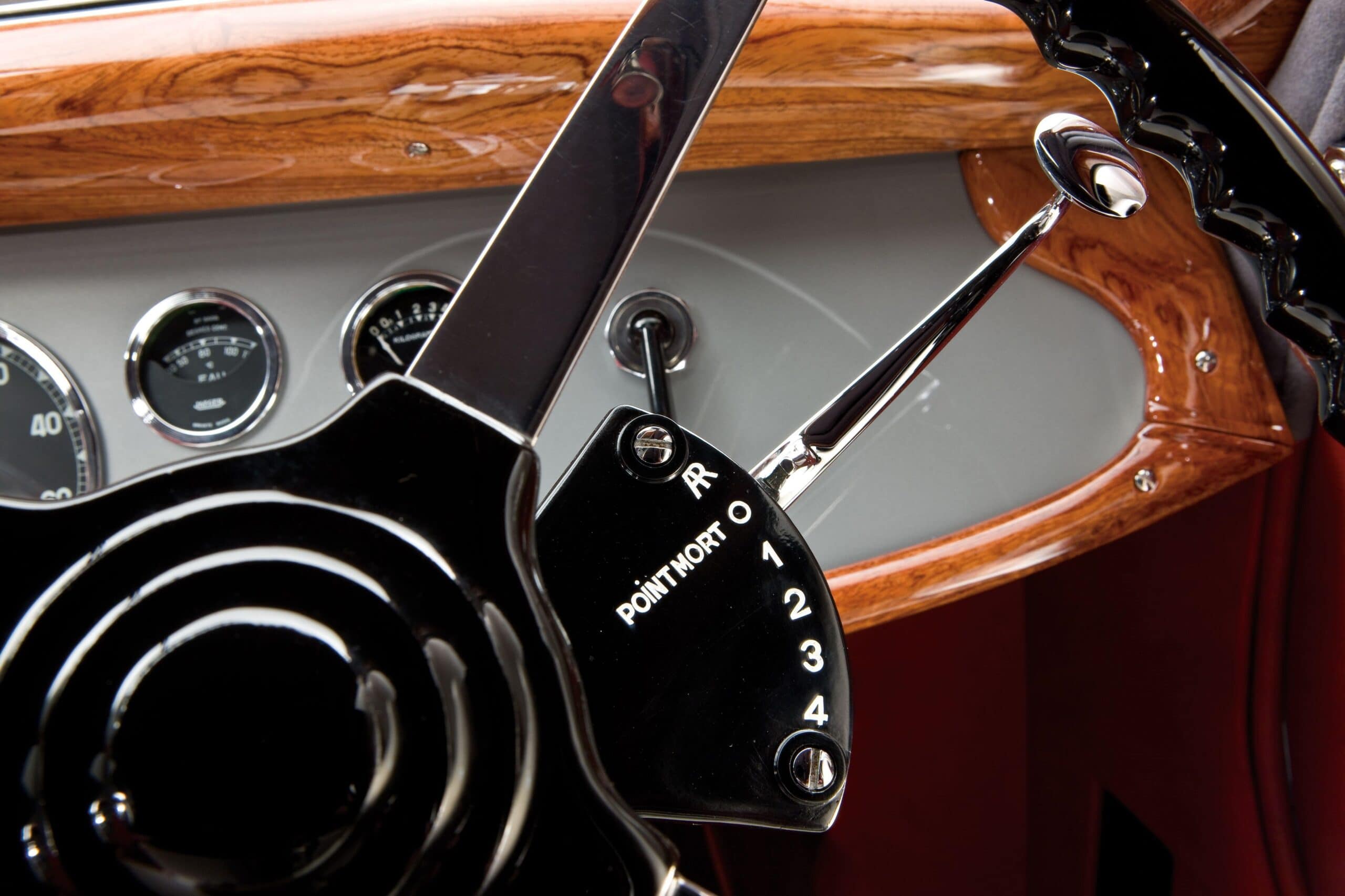 À cette époque, la voiture autrefois discrète, a été peinte en Rouge-Ferrari et ses phares Art déco carénés derrière les grilles typiques, remplacés par des feux Marchal conventionnels dans des “Pods”, ce qui lui donnait un aspect vaguement Jaguar XK120… Cette Talbot-Lago avait une boîte de vitesses à pré-sélecteur Wilson, comme on le trouve dans de nombreuses voitures de sport des années 1930, à partir de Riley. À l’aide d’un petit levier, on présélectionne le rapport que l’on a l’intention d’utiliser, ensuite, après quoi, le simple fait d’appuyer sur l’embrayage change automatiquement le rapport. C’est très pratique lorsqu’on conduit sur une route sinueuse, car cela permet de garder les deux mains sur le volant à l’approche d’un virage…. Bref, en 1982, un autre Californien, Pat Hart, a acheté la voiture et l’a fait repeindre en noir (plus flatteur,) ce qui a abouti à une deuxième place à Pebble Beach en 1984. Réalisant qu’elle n’était toujours pas assez bonne pour les grands honneurs, il a commencé une restauration après démontage intégral qui a été poursuivie par Peter Mullin lorsqu’il a acquis la voiture en 1985.