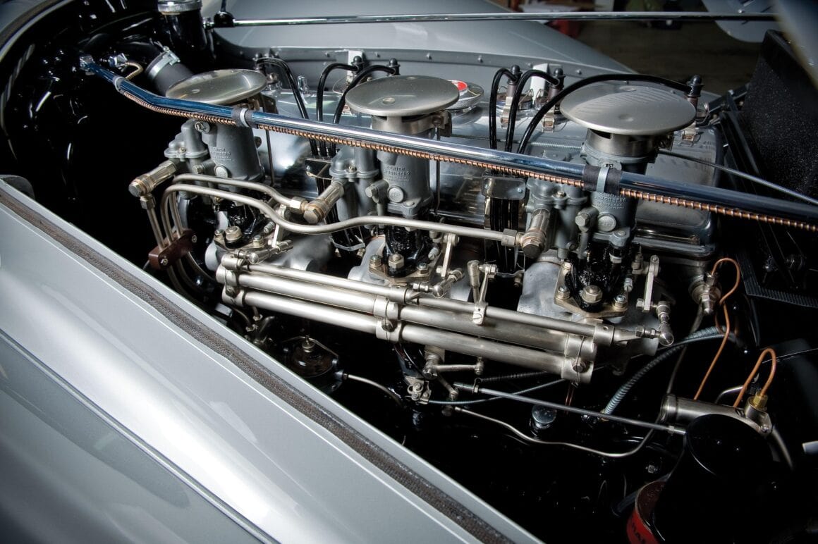 Moteur 3996cc à six cylindres en ligne, OHV, trois carburateurs Zenith-Stromberg