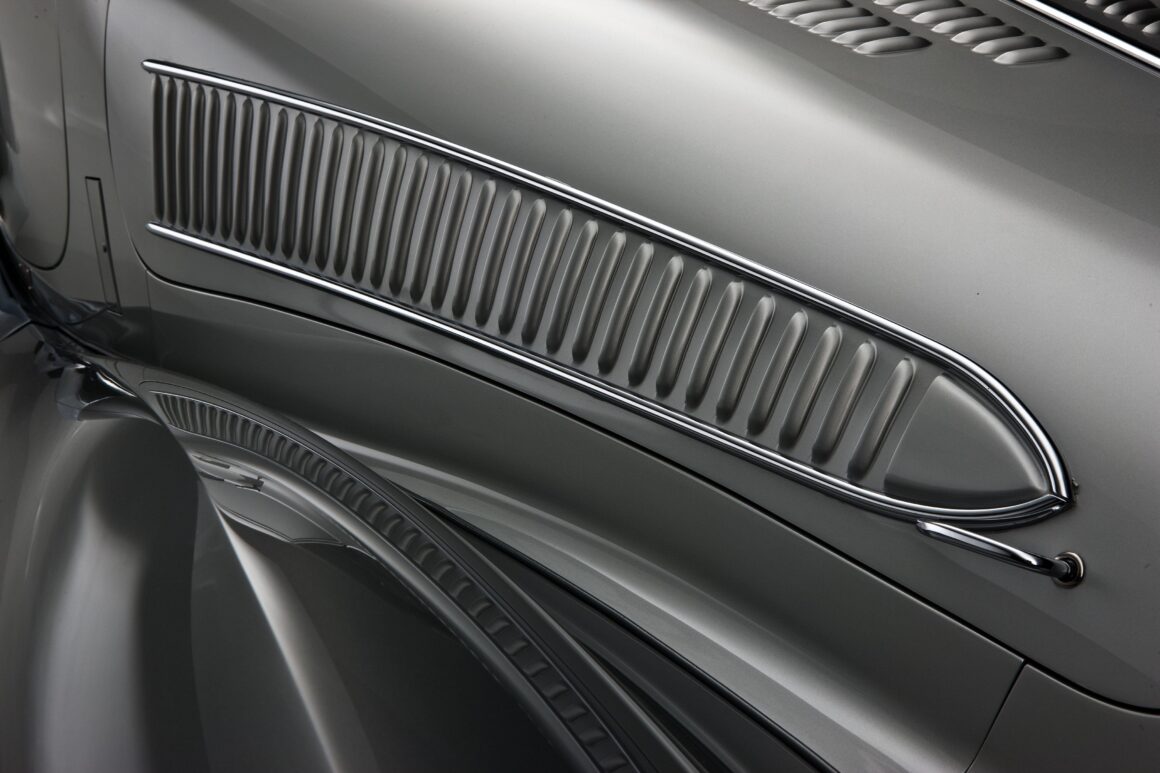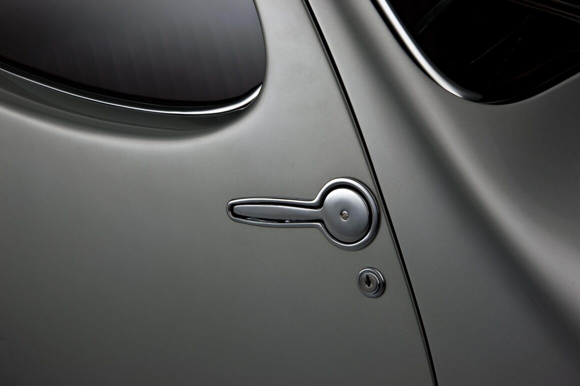 “La voiture avait des fenêtres d’aération non originales [quarts de lumière] dans les vitres de porte, probablement mises en place dans les années 1950 ou 60, alors nous avons fini par les enlever. Ensuite, nous avons trouvé des fissures de contrainte dans les poteaux A, et le capot avait été endommagé après avoir été laissé sans attache lors d’un rallye en Europe. Puis nous avons vu que le châssis avait été coupé pour être diminué de taille et que la carrosserie ne correspondait en rien aux normes. Idem pour le moteur. Nous avons donc terminé la restauration en émetant toutes réserves comme quoi c’était un bitza non original. Nous avons également fait du chromage, un certain rembourrage, sans éradiquer la patine qu’elle avait acquise et, bien sûr, la peinture. Peter aimant cette couleur aubergine, il ne voulait pas la changer, la voiture avait été entretenue par Bob Mosier, donc elle était en bon état de roulage. L’affaire était complexe quant à savoir s’il fallait informer la presse que la Talbot-Lago Figoni-Falaschi de Peter Mullin n’en était plus vraiment une.100% nette et 100% authentique !