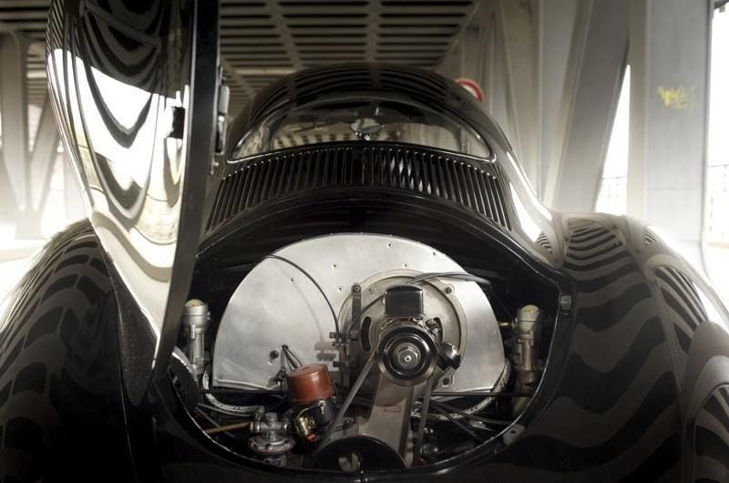 Avec sa carrosserie en aluminium construite par le carrossier Reutter à Stuttgart, le poids de la voiture prête à rouler était de 850 kilos… et bien que le développement de la carrosserie avait été réalisé à partir d’un seul point de vue aérodynamique, l’avant de la voiture était le même que la Volkswagen classique de même que l’arrière, avec la petite fenêtre et les fentes de ventilation. Mais, afin de diminuer la traînée, des carénages de roues en aluminium ont été installés, tandis que l’essieu à barre de torsion avant et l’essieu arrière oscillant, avec les amortisseurs et les freins à tambour de la KdF Volkswagen.