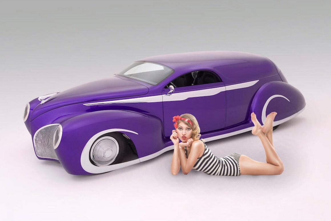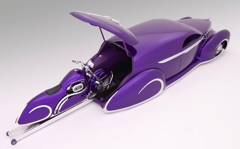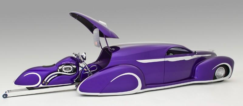 Le Déco-Liner Zephyr Sedan est un Hot-Rod façon Kustom-Kar-Delivery servant à transporter la Déco-Scoot, une Harley Sportster traitée façon Chopper-Kustom…
