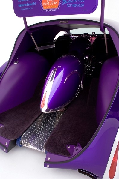 Cook a réussi à faire rentrer une Harley Sportster’92 à l’intérieur de la voiture selon une conception de l’artiste Frank Nicholas, ce qui a nécessité l’utilisation de la traction sur les roues avant afin d’éliminer un arbre de transmission et obtenir ainsi une hauteur minimum du plancher arrière.