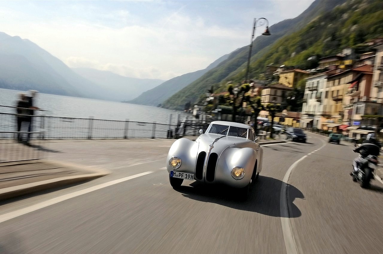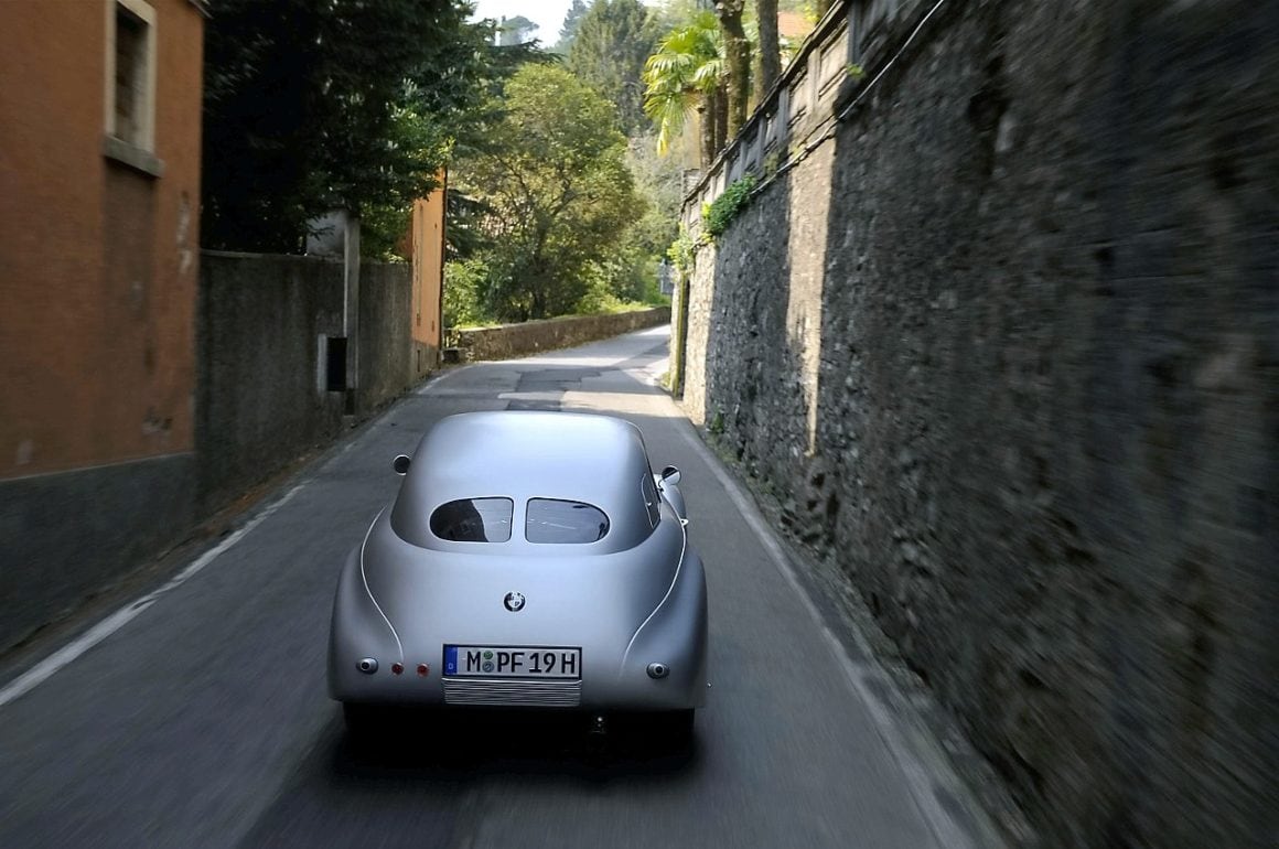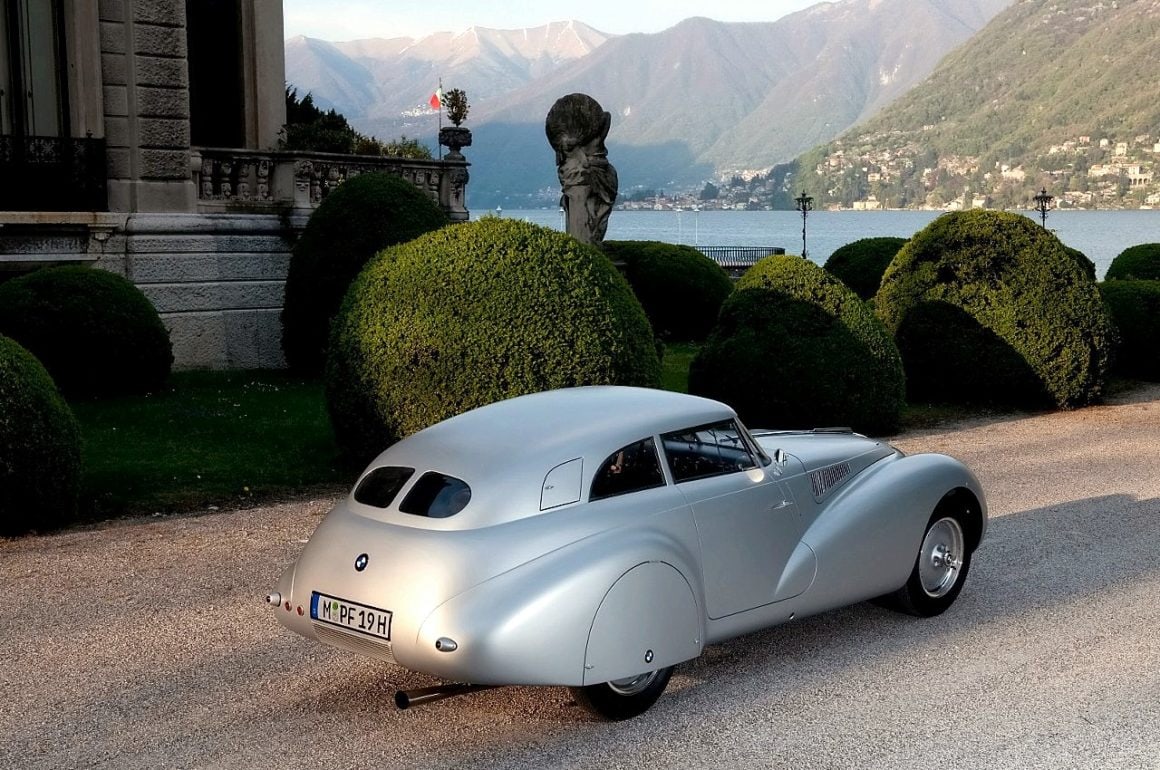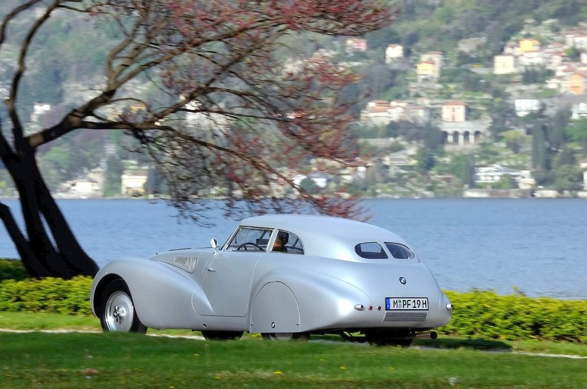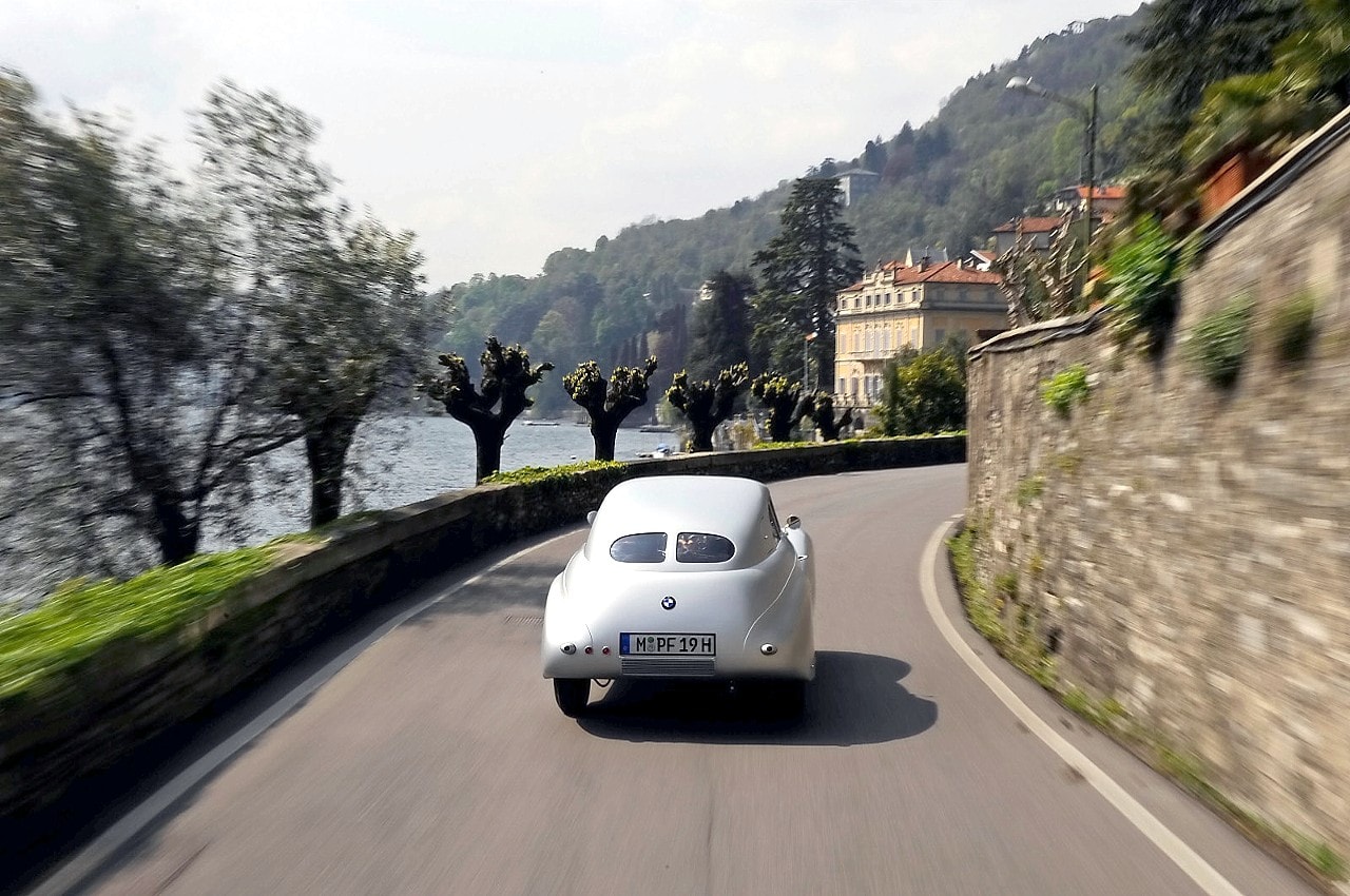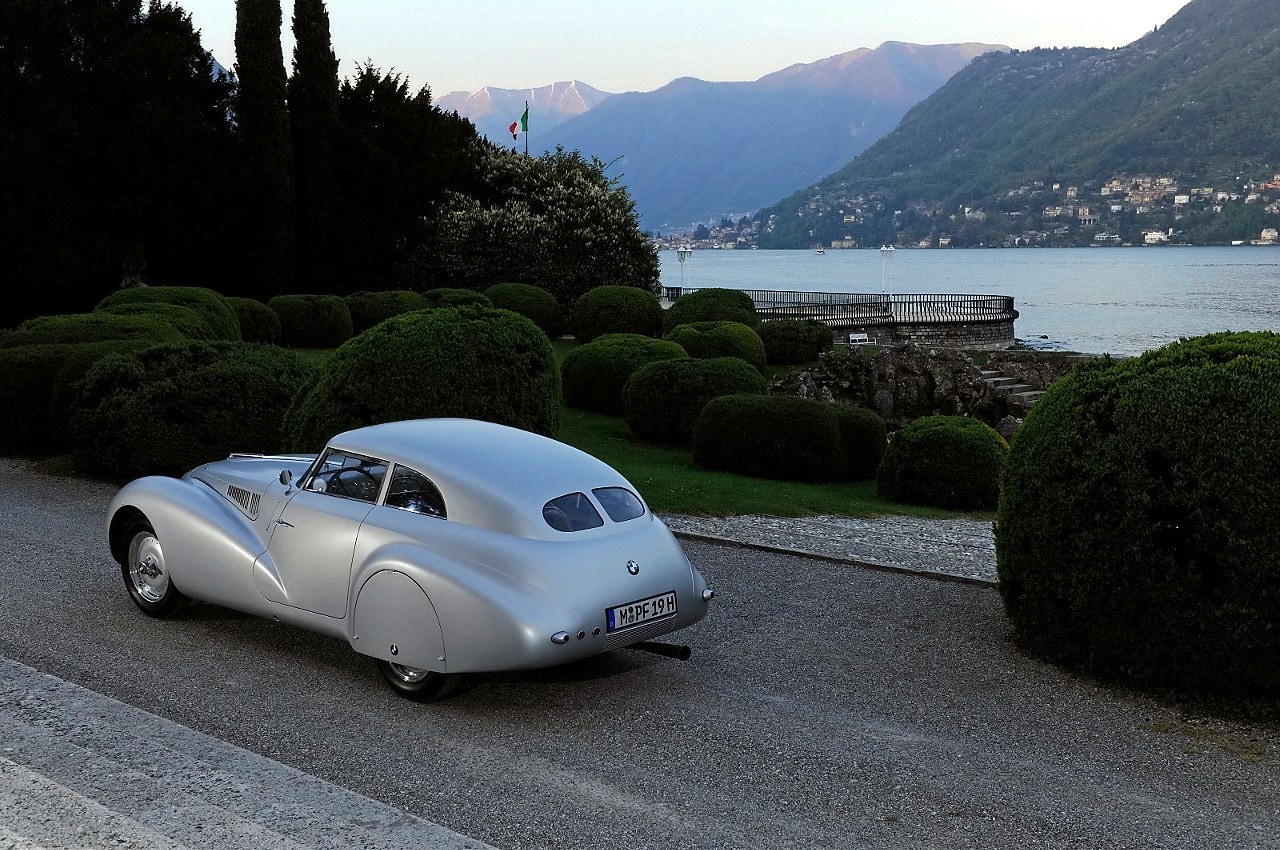 Du garage de la Villa d’Este autant que du passé, est sorti un véhicule argenté à l’allure et au bruit menaçant : une BMW 328 Kamm Coupé de 1940…