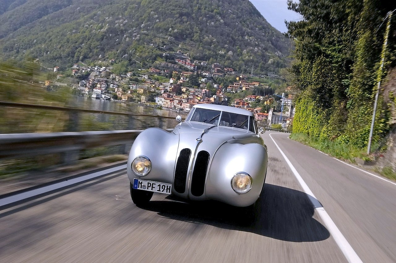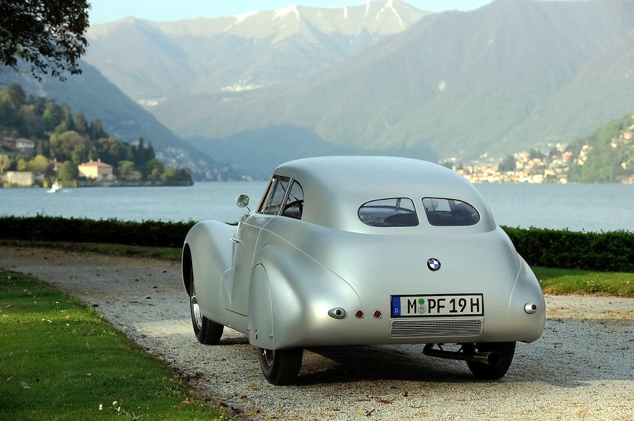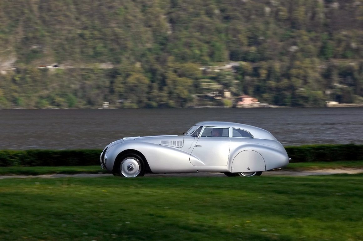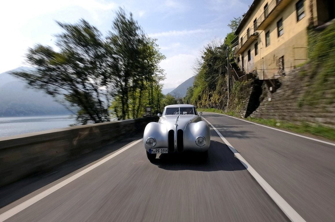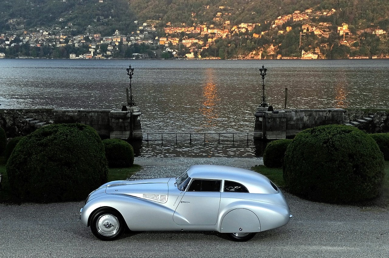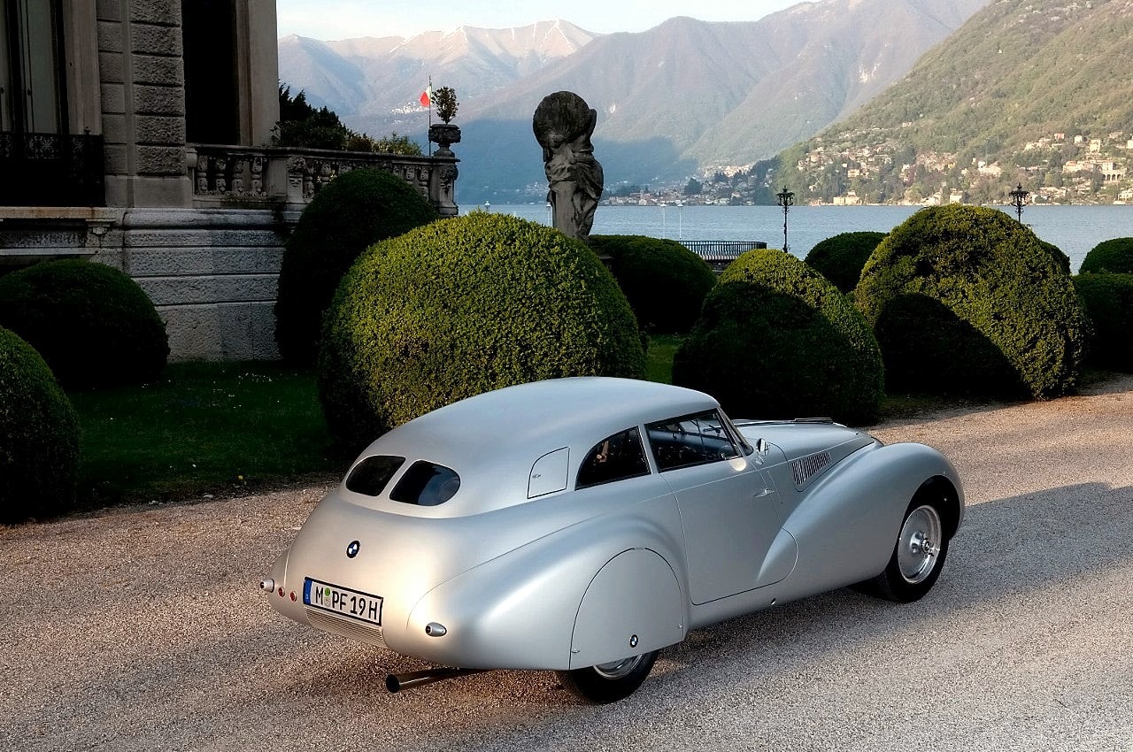 Du garage de la Villa d’Este autant que du passé, est sorti un véhicule argenté à l’allure et au bruit menaçant : une BMW 328 Kamm Coupé de 1940…