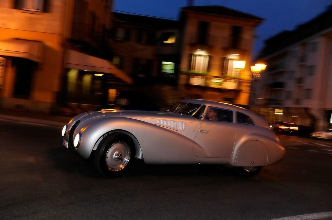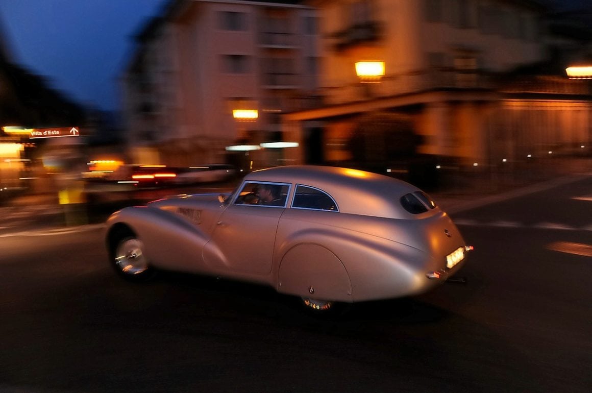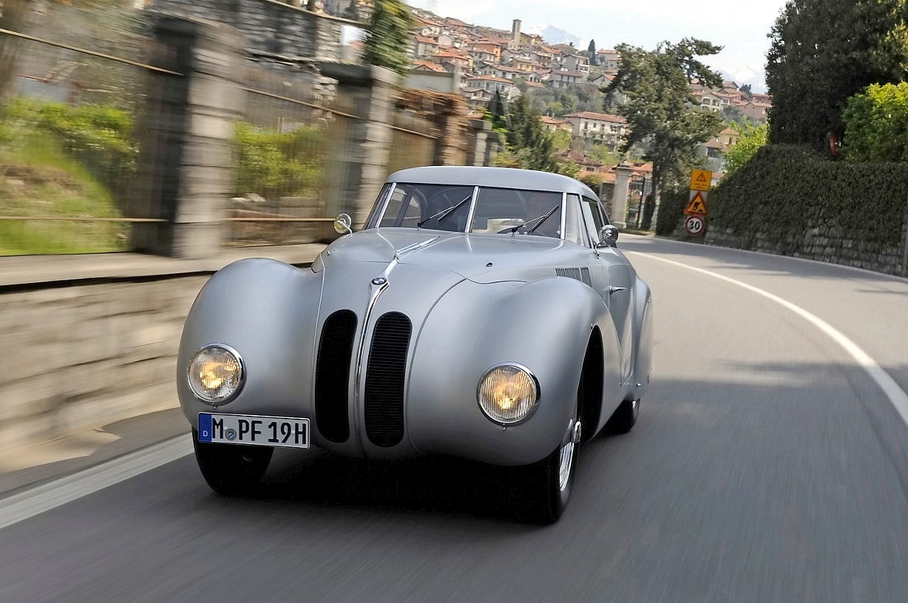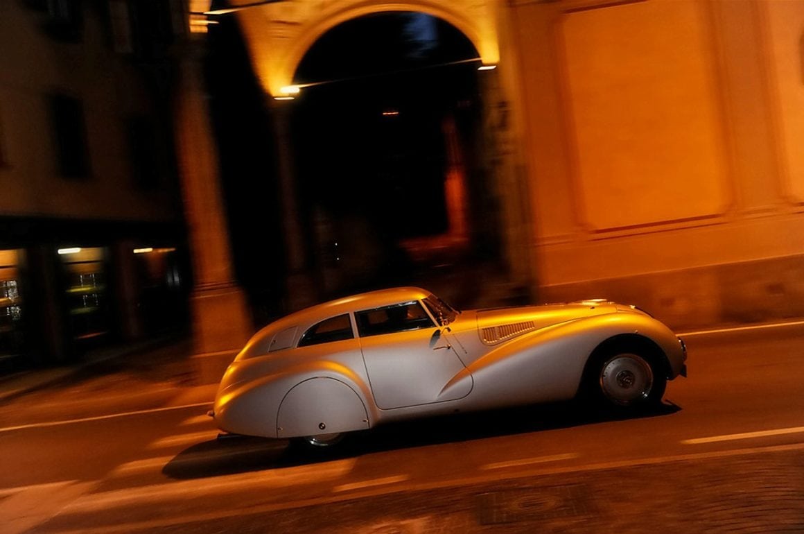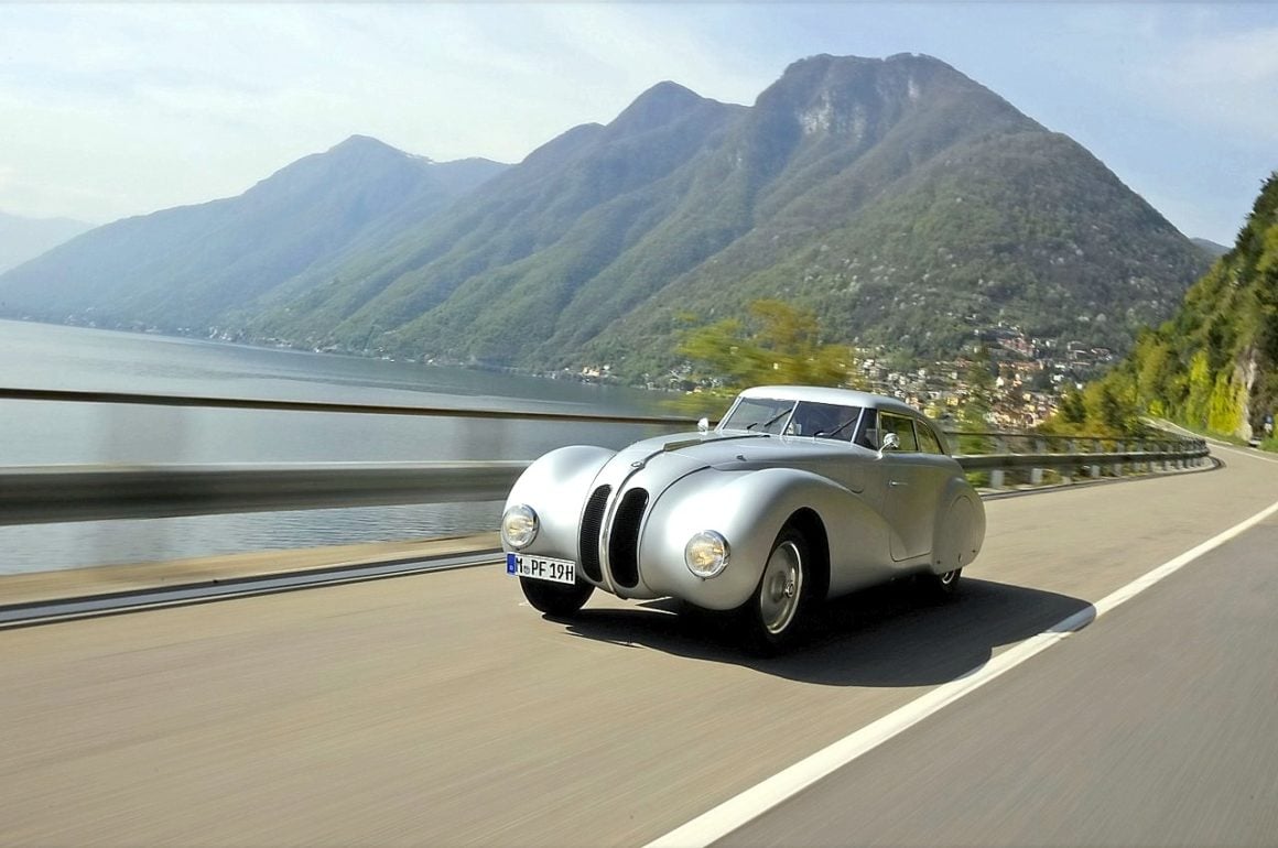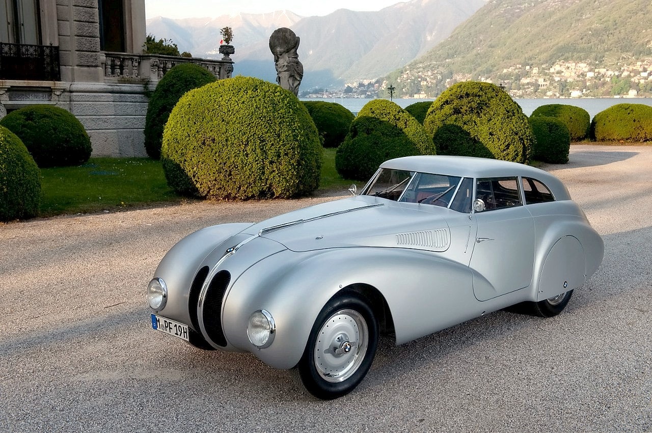 Du garage de la Villa d’Este autant que du passé, est sorti un véhicule argenté à l’allure et au bruit menaçant : une BMW 328 Kamm Coupé de 1940…