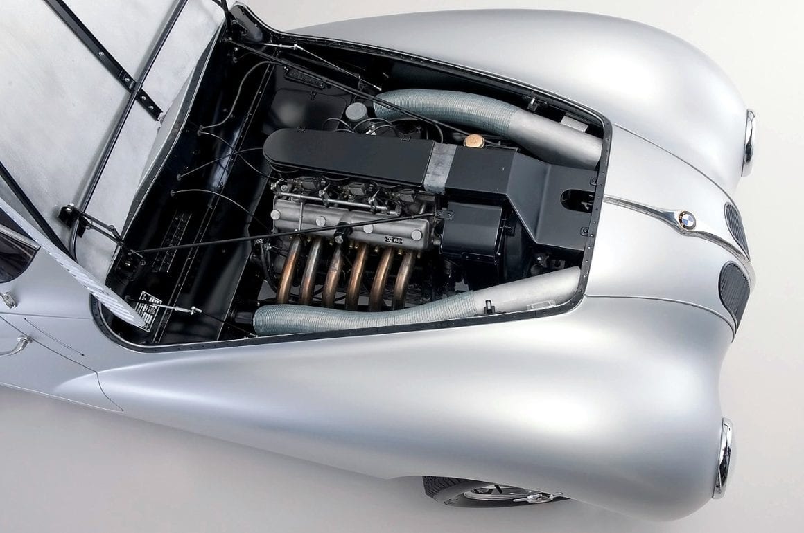 C’était la première fois qu’un moteur recevait une culasse en alliage léger, montée en série avec des soupapes en tête en V…, la 328 recevait également un châssis à structure tubulaire.