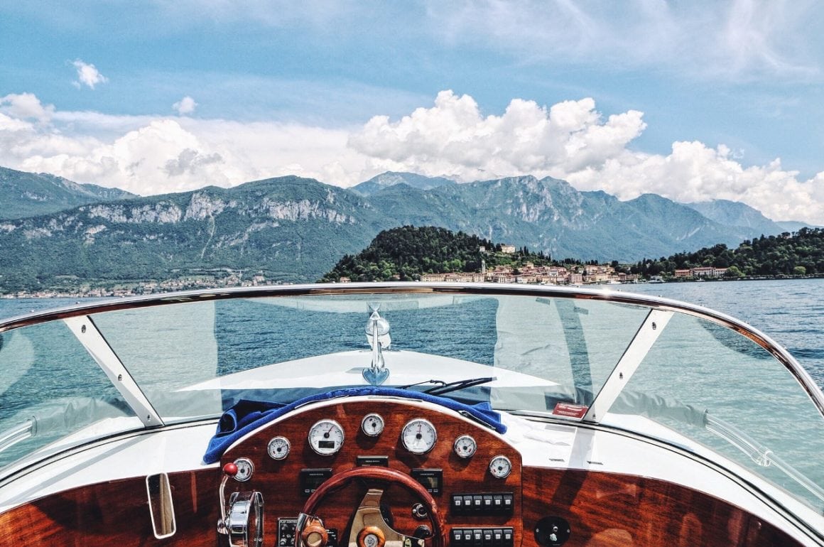 Fi, foin, foutre de ces choses…, une vedette Riva à moteur aux allures vénitiennes m’attendait sous un ciel nuageux pour une promenade en direction de Bellagio.