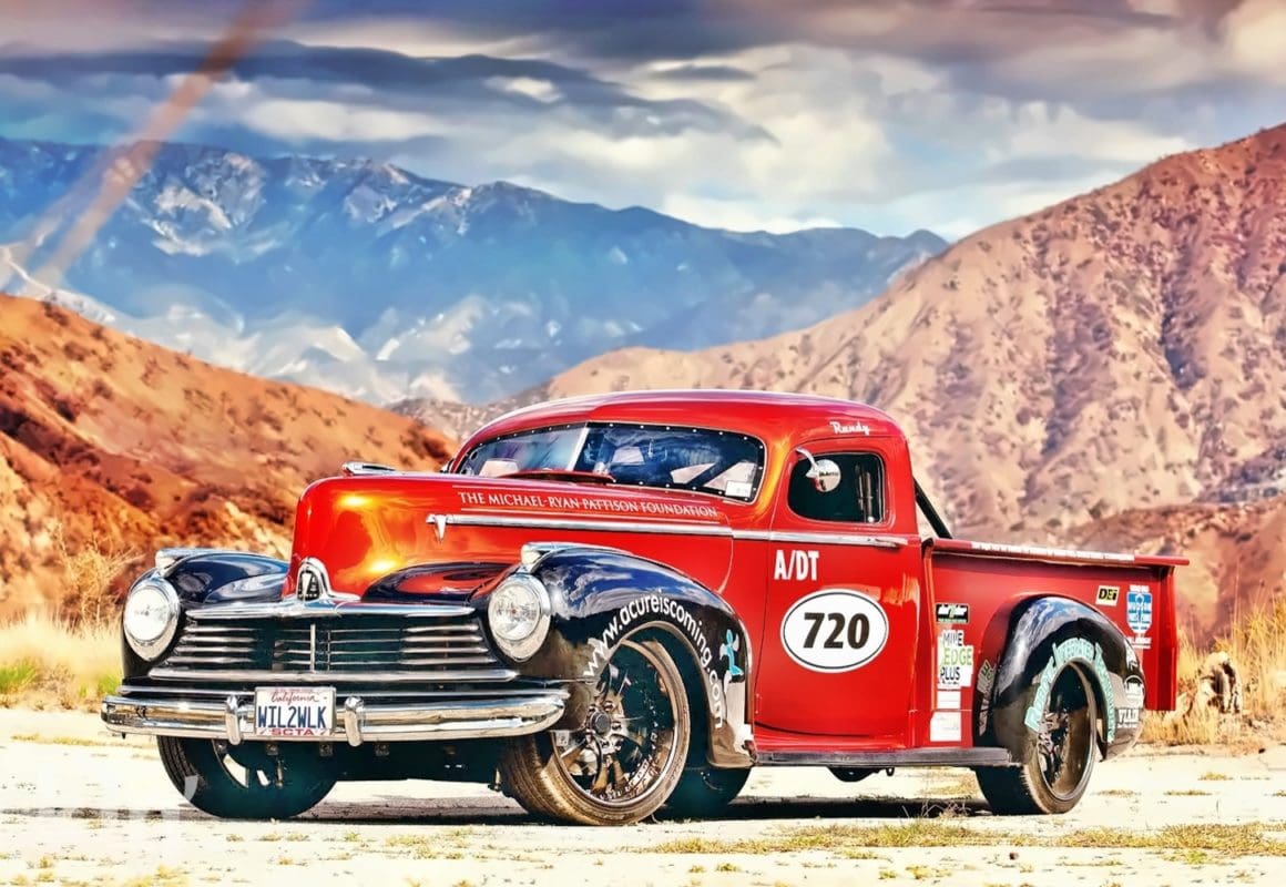 Randy Simmons, désinvolte, d’une chiquenaude a enlevé un peu de poussière de l’aile de son Hudson Pick-up 1947, a plissé ses yeux du soleil de midi et m’a lâché : “Tu sais, Pat…, je suis fatigué de construire des voitures qui ne font qu’une chose”…