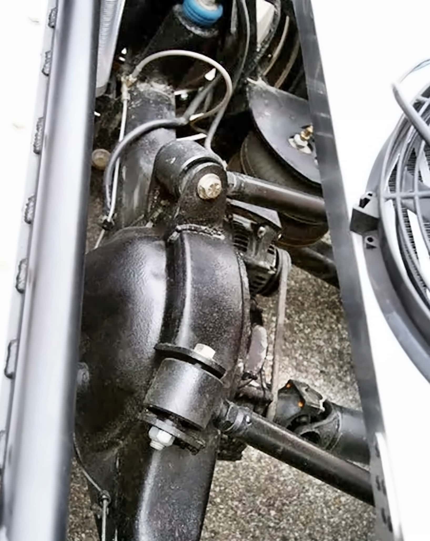 Naturellement, lorsque vous utilisez un moteur diesel et un très gros turbo, le refroidissement est fondamental…, le Powerstroke 7.300cc Ford F-250 prenant toute la place sous le capot, Randy a monté l’intercooler dans la benne arrière, avec toute la tuyauterie nécessaire, plus une grande sortie d’échappement de cinq pouces… et pour quand “les choses” devenaient vraiment très chaudes, il a monté un système de DEI de CO², qui pulvérise du dioxyde de carbone liquide dans tout l’intercooler, réfrigérant l’air comprimé à 50-60 degrés Fahrenheit, avant qu’il ne passe dans le moteur.