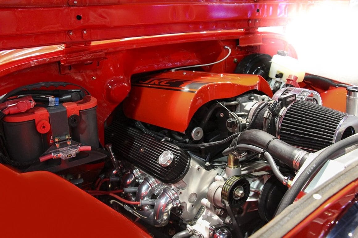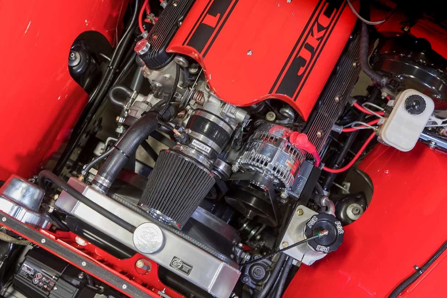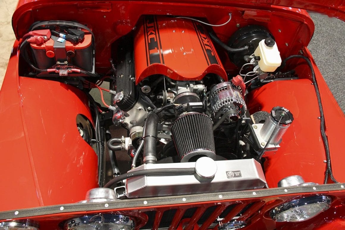 A partir de 1950 cependant, la Jeepster va bénéficier en option du six cylindres Lightning de 2434 cm3, également latéral, qui développait quelques pathétiques 72 chevaux (les versions dotées du six cylindres se distinguaient alors des basiques 4 cylindres, par le chiffre 6 qu’elles arboraient sur le capot).