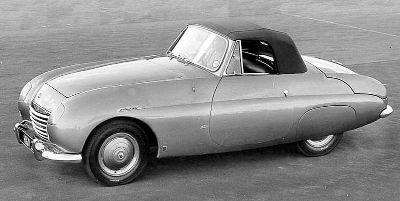 Dans un premier temps, ce n’est pas son idée et il préfère tenter un rapprochement avec Morgan avec un prototype ambitieux, baptisé Roadster TRX (TR pour “Triumph Roadster”) qui est exposé au salon de Londres en 1950…, la voiture est dotée d’une caisse en aluminium, d’un overdrive, de phares escamotables et de gadgets électriques, telle l’ouverture du capot, ou commandée par la dépression d’admission moteur, tout comme les sièges et le déploiement de l’antenne radio…