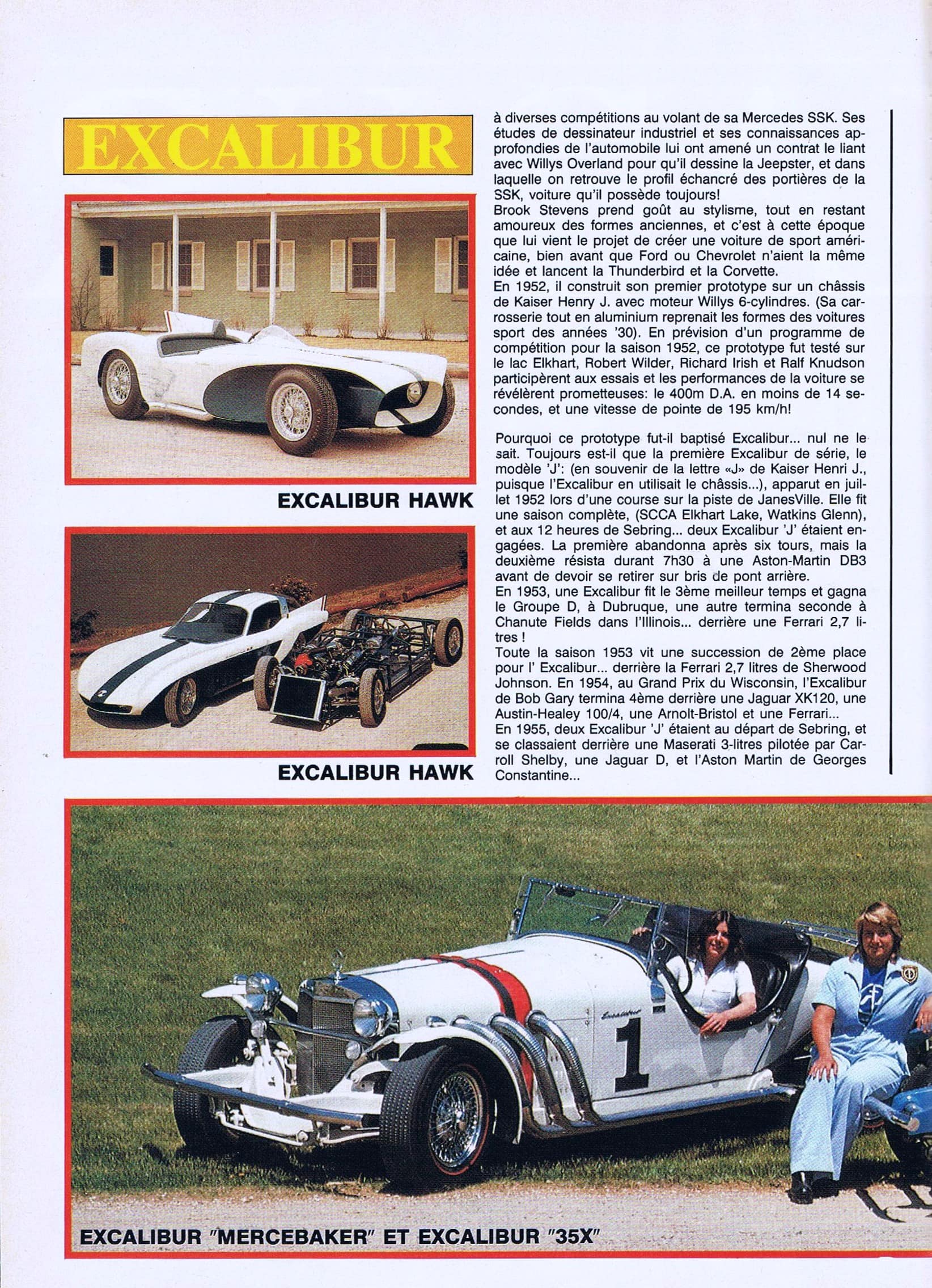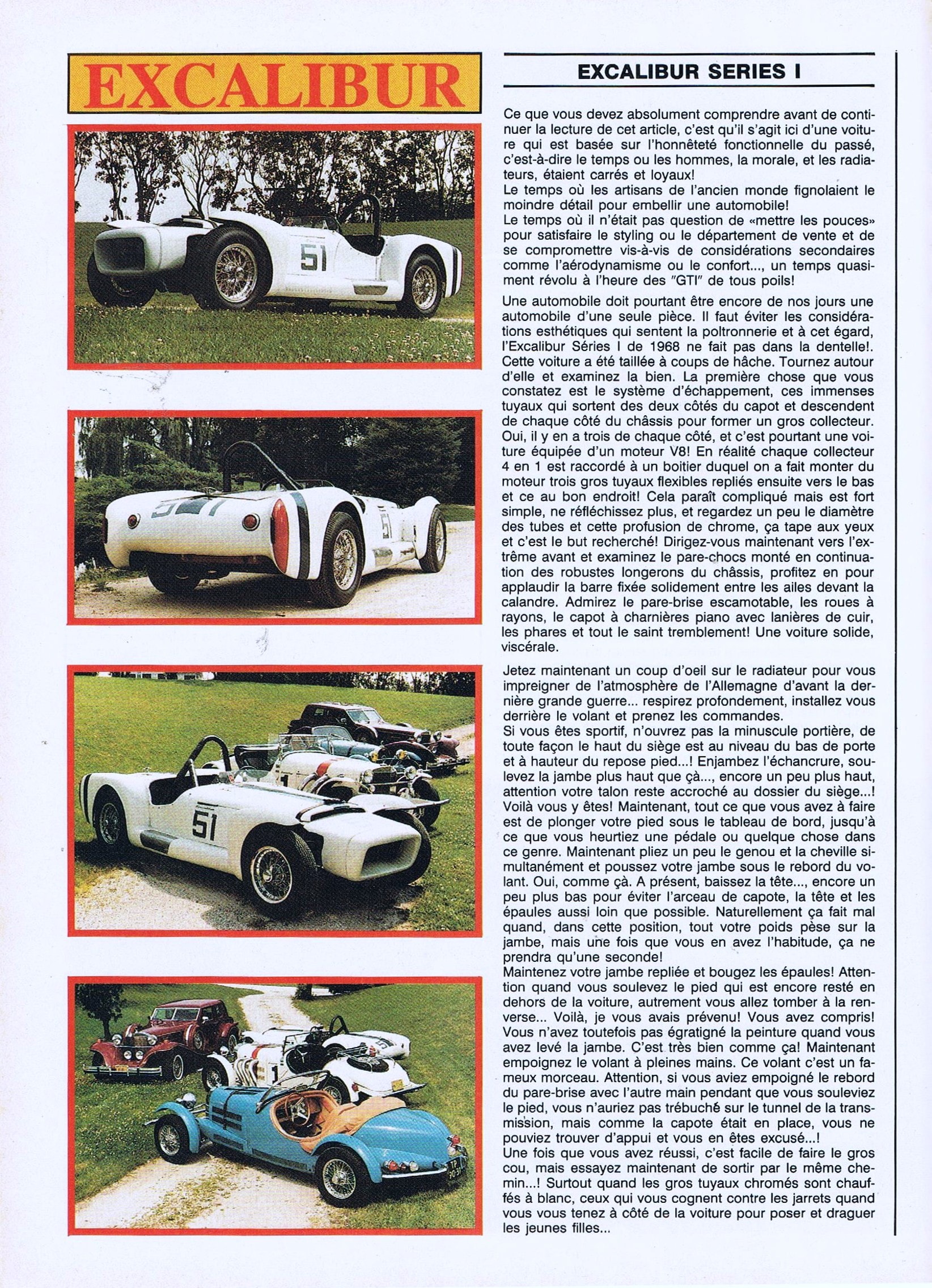 La saga Excalibur est, pour certains consuméristes qui en tirent profit, une légende faite de bricks et de brocks (de Brooks), d’inventions et de racontars colportés par des halluciné(e)s qui n’y “connassent” strictement rien d’autre que les bénéfices (plantureux) qu’ils (et elles) peuvent tirer (ou tentent de tirer) de la connerie humaine en matière d’automobiles…