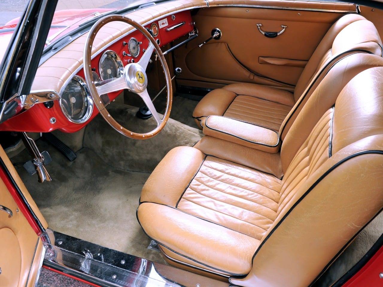 Equipée d’un moteur Ferrari “Colombo” SOHC V-12, 2562cc de 150 chevaux (je sais, c’est à pleurer !) coiffé de trois carburateurs Weber 32 mm DCF, cette Ferrari 212 Inter disposait d’une transmission manuelle à cinq vitesses, d’une suspension avant indépendante avec double triangulation et ressorts à lames transversaux, d’un essieu rigide arrière avec ressorts à lames semi-elliptiques et bras tirés… et de quatre freins à tambour hydrauliques.