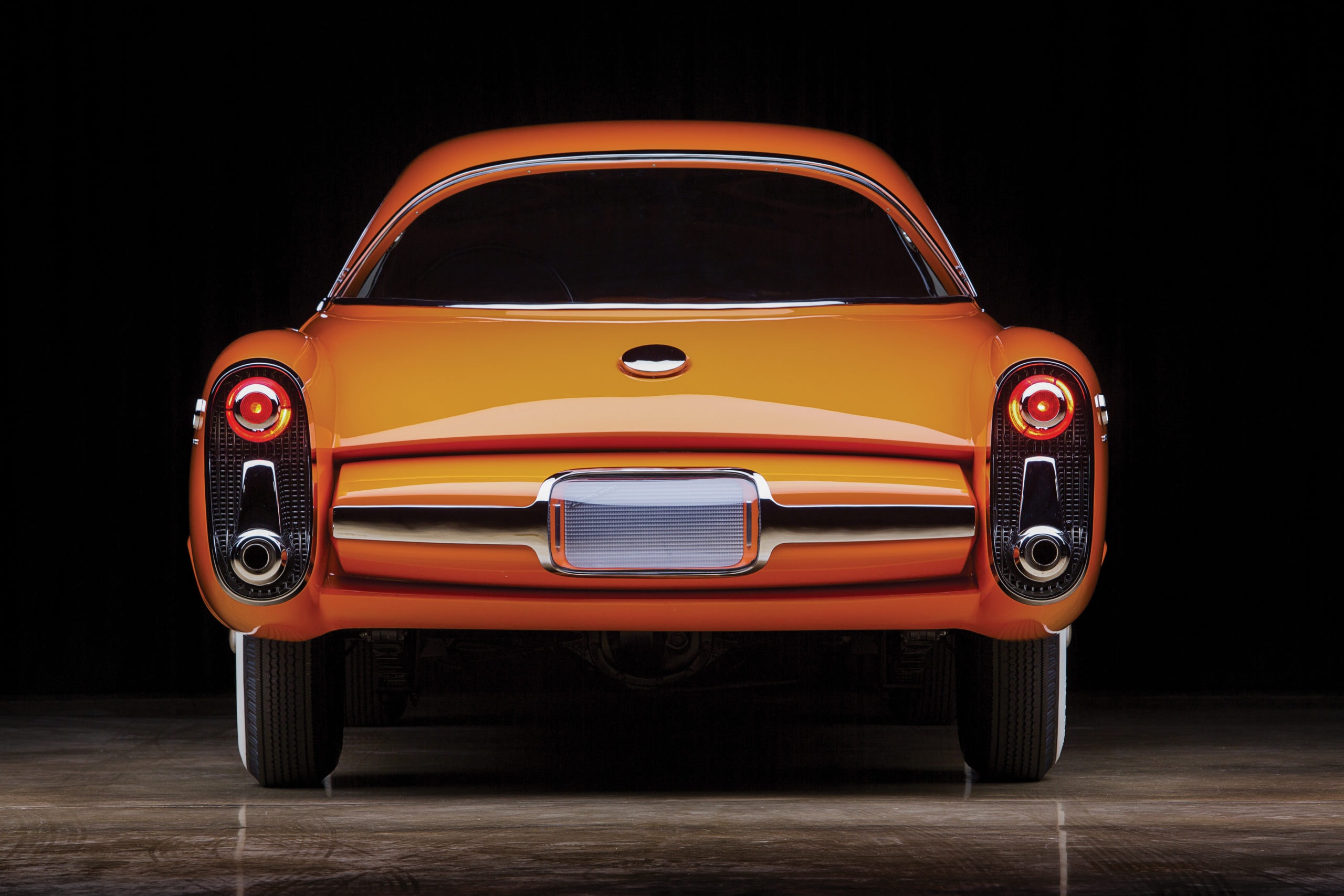 Le design futuriste de Gian Carlo Boano reposait sur l’idée d’attirer le regard des foules pré-ahuries… ainsi que, surtout, les objectifs photos de la presse… et pour y arriver, rien de tel que l’art du kitch et de la démesure baroque, en l’occurrence une auto-aéronef “à réaction” destinée exclusivement à rester les 4 roues sur terre…, une requalification du fameux slogan de Raymond Loewy : “la fonction crée la forme”…, mais du genre “l’inutilité crée la farce”…, un détournement paradoxal de l’intelligence humaine (supposée) alimentant un délire “insignificatif” ne servant qu’à choquer les badauds et “pisser dans le sens du vent” soufflé par les designers américains, rois de l’esbrouffe…