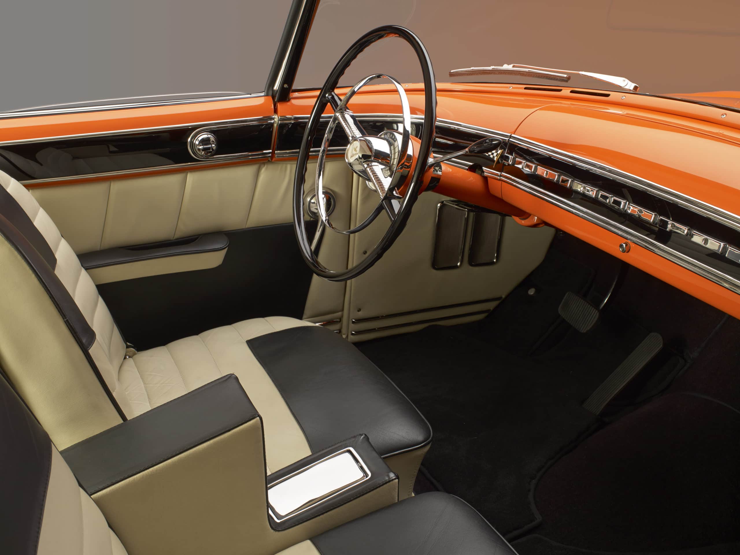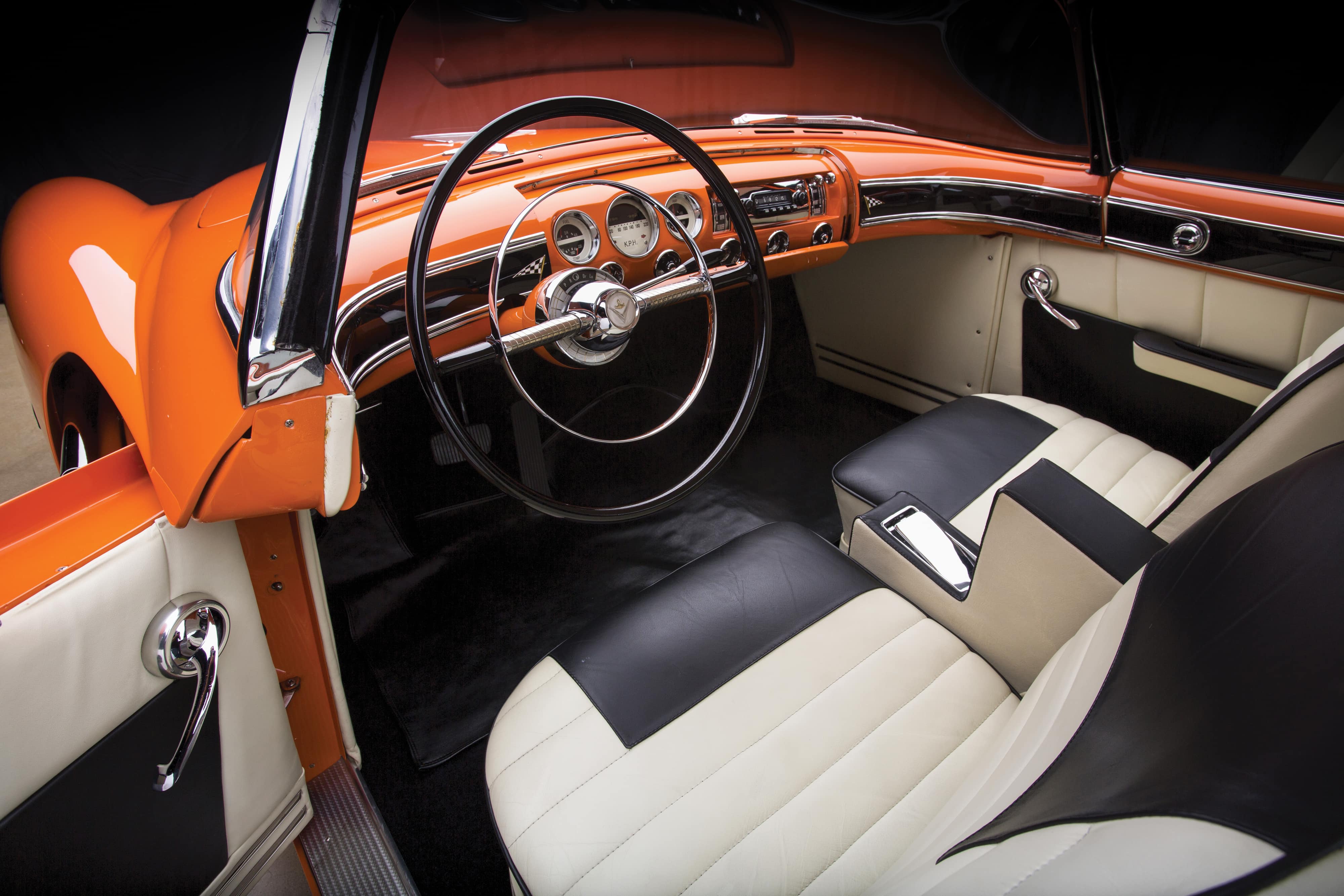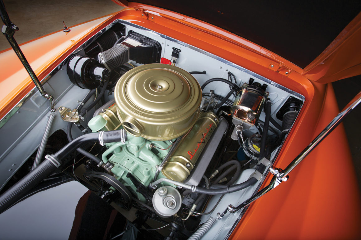 Les deux Jim’Cox ont pu ainsi travailler à la restauration de la voiture à laquelle ils ont apporté une finition extraordinaire de qualité…, les instruments qui étaient initialement non fonctionnels, ont été reconstruits à l’état neuf et de fonctionnels…, un nouveau et puissant moteur V-8 de 341 cubic inch ne produisant toutefois que 200 malheureux chevaux, a été repositionné sous le capot et accouplé à une boîte automatique à quatre vitesses, contemporaine.