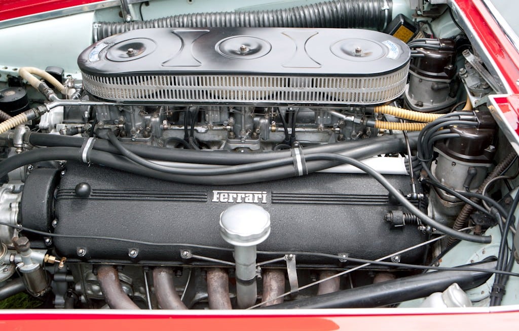 Le cœur de la 410 est son 5.1-litre SOHC V-12 de 340 chevaux, une conception d’Aurelio Lampredi sur base d’un moteur 4.5 litres Ferrari modifié pour une utilisation urbaine mais réalésé à 4,9 litres.., fidèle à son héritage de course, le moteur a des têtes de cylindres hémisphériques, deux distributeurs et deux bobines… et les deux pompes mécaniques sont assistées aux reprises par une pompe auxiliaire électrique pour alimenter un double-trio de Weber 40 DCF…, les arbres à cames sont entraînés par une chaîne à rouleaux triple…, le bloc et le carter sont moulés en alliage léger et utilisent des inserts en acier. .