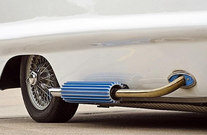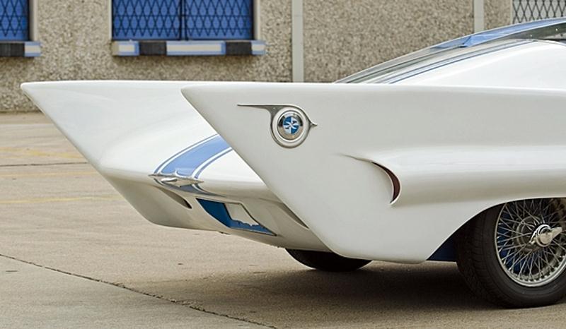 Built on a 1950 Fiat chassis procured with the help of Dual-Ghia engineer Paul Farago, the car used Simca mechanical pieces and was wrapped in a streamlined, finned fiberglass body fabricated by Exner, Jr. himself at the Dual-Ghia assembly plant.