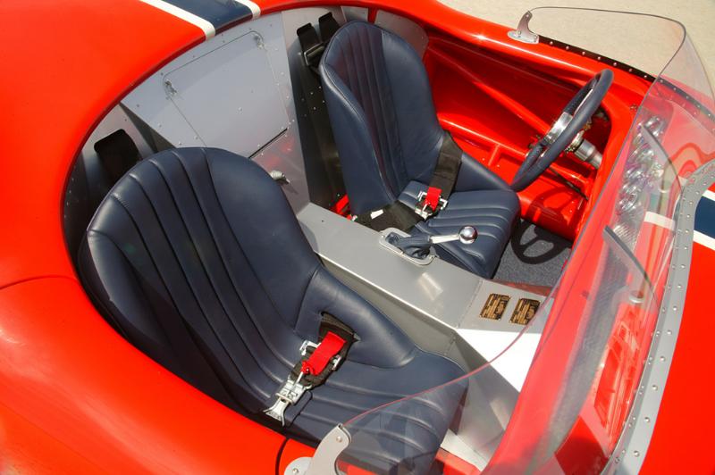 L’inspiration est venue des Corvette, Devin et surtout Jaguar, tel l’appuie-tête avec nageoire dorsale de la Jaguar et sa “couverture” rigide coté passager du cockpit…, cette carrosserie était boulonnée sur un châssis “en échelle” réalisé facon “Birdcage” en tubes chrome-molybdène construit par Robert Kirkland.