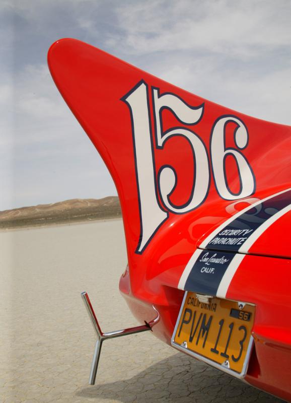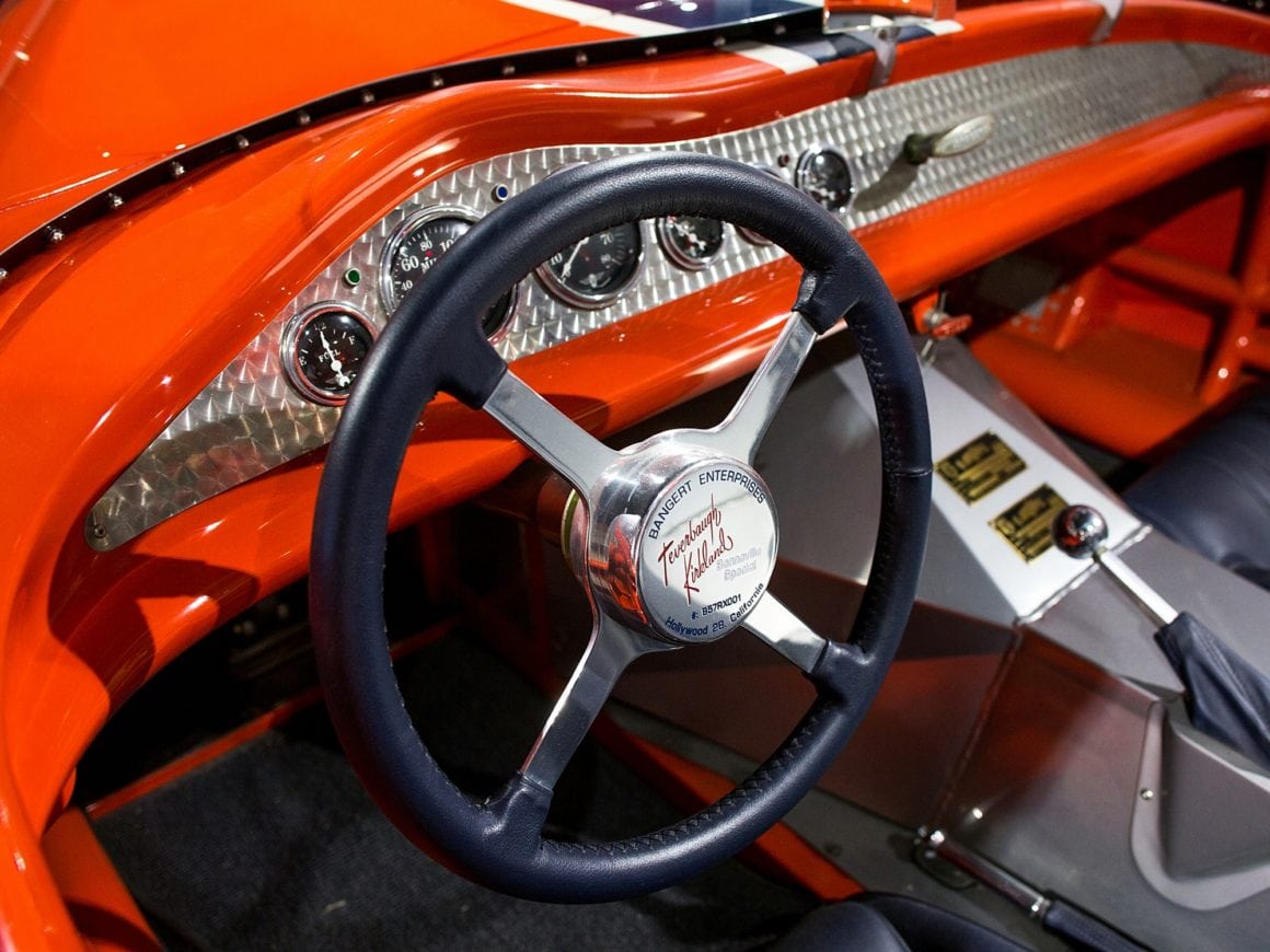 La carrosserie avait été magnifiquement conçue en fibre de verre par l’atelier Bangert Enterprise situé à Hollywood, pour être la plus aérodynamique possible grâce à un mix des sportives d’alors !