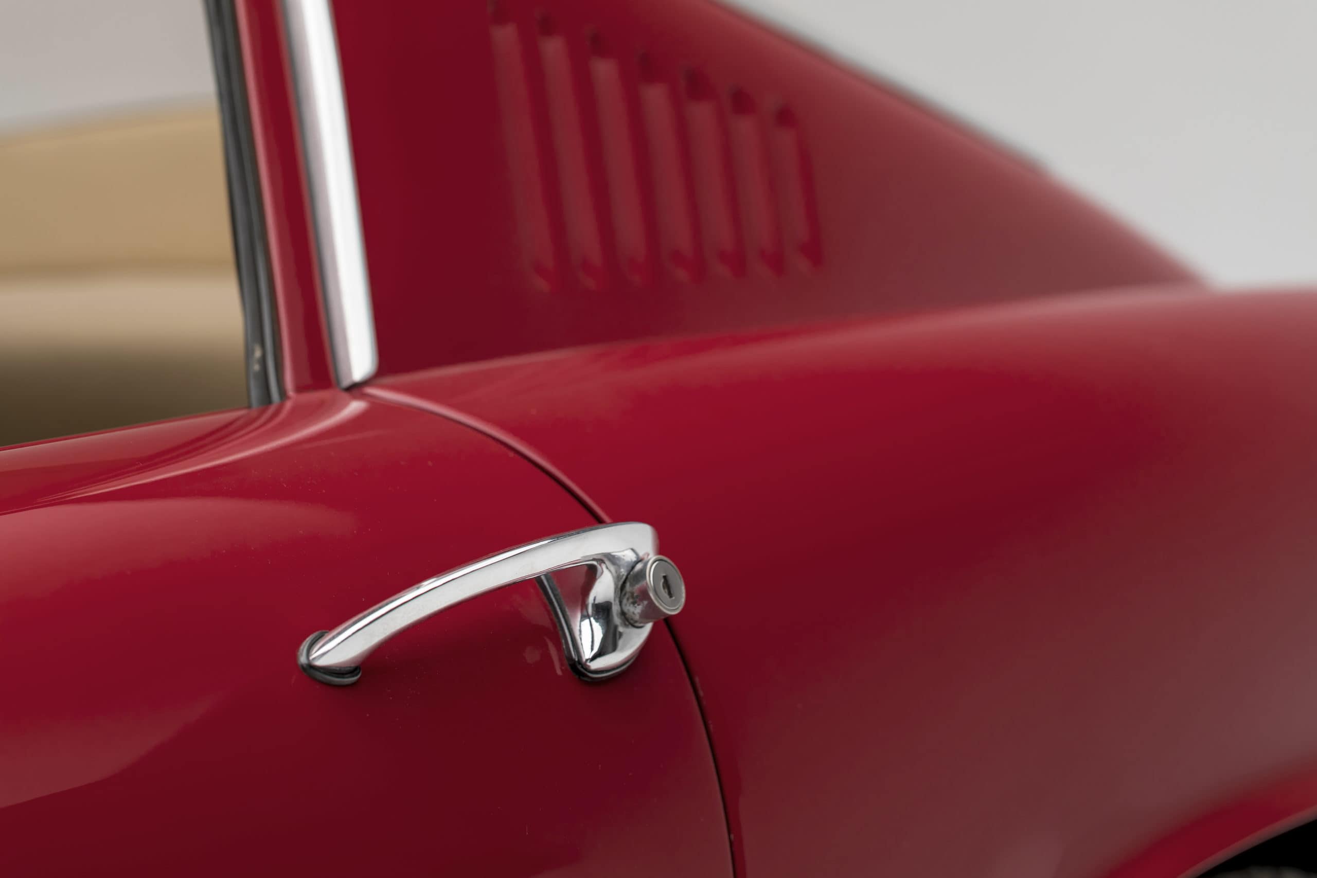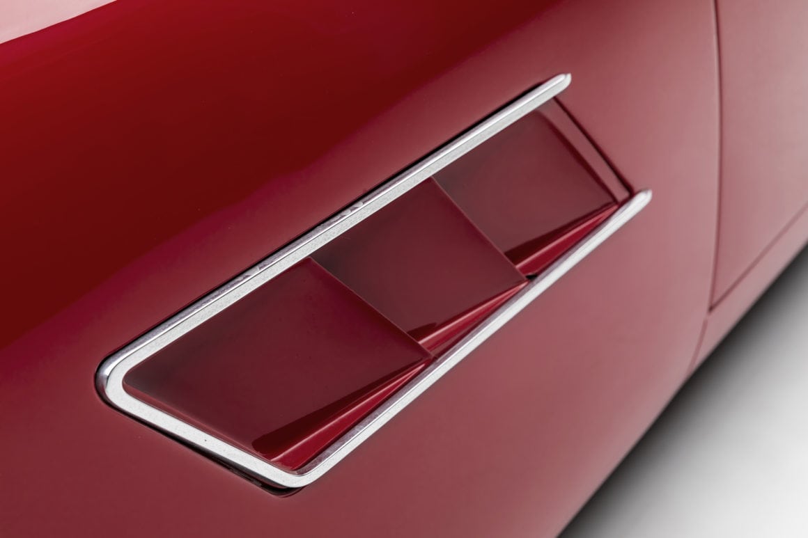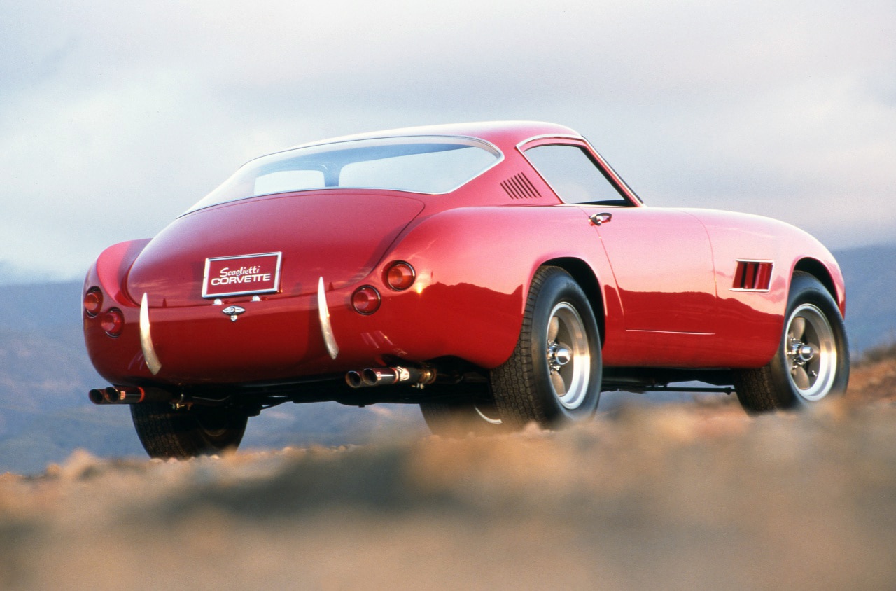 Lors d’un de ses fréquents voyages en Europe, Laughlin a rencontré Sergio Scaglietti qui a accepté de produire une petite série de 3 carrosseries pour les 3 châssis Corvette… à l’époque, Scaglietti fabriquait la Berlinette “Tour de France” Ferrari et quelques autres Ferrari de course… les 3 Corvette Scaglietti allaient disposer du même design de la Ferrari “Tour de France”, mais adapté pour s’adapter à l’empreinte plus large de la Corvette….