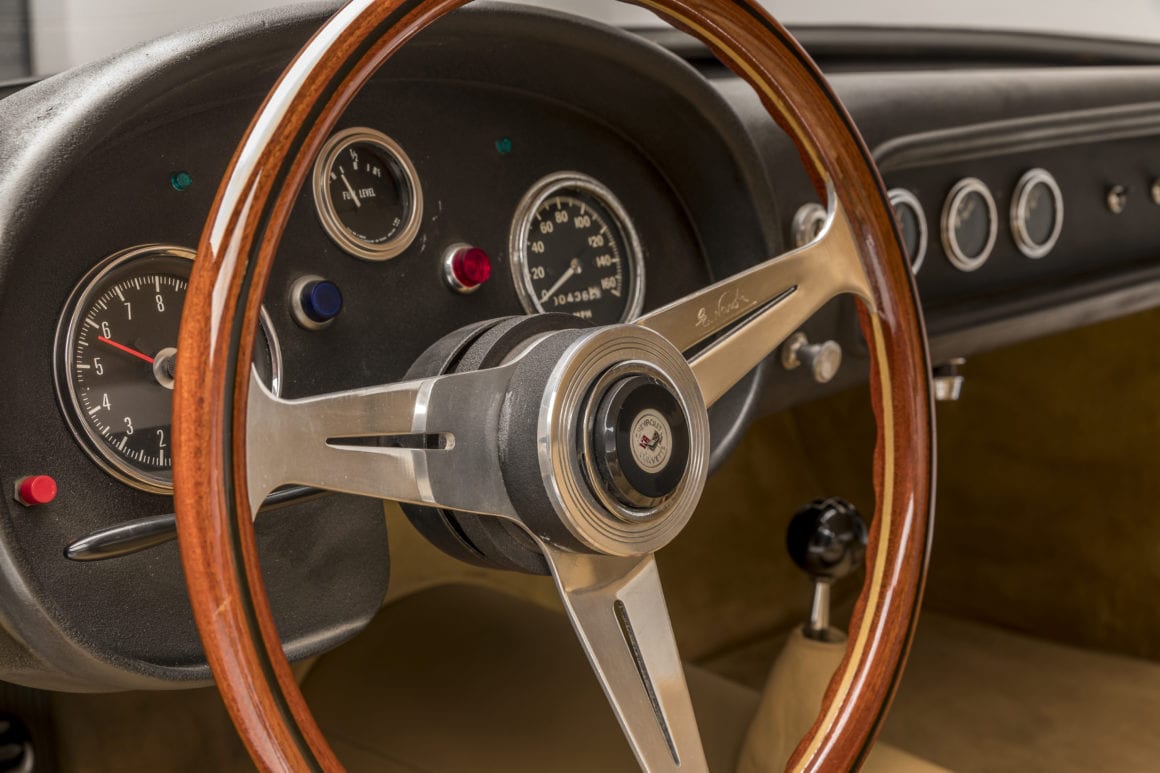 Dans un effort pour impressionner, ou peut-être pour apaiser la direction de GM, Laughlin a spécifié qu’une calandre Corvette typique serait installée sur les 2 Corvette Scaglietti… et que l’intérieur serait également “hybridé” avec des Jauges Stewart Warner, frein de stationnement à poignée en T, pommeau de levier de vitesses de GT italienne classique… un tableau de bord au fini craquelé, des sièges en cuir profondément renforcés (Les trois hommes derrière cette histoire Corvette Scaglieti un peu spéciale mesurant plus d’1,80 mètre, l’intérieur devait rappeler des Ferrari GT adapté aux grands gabarits texans !)