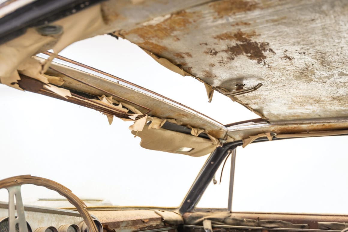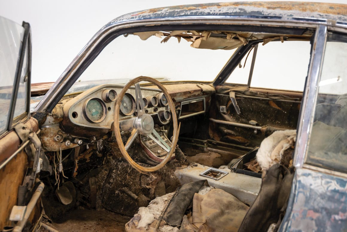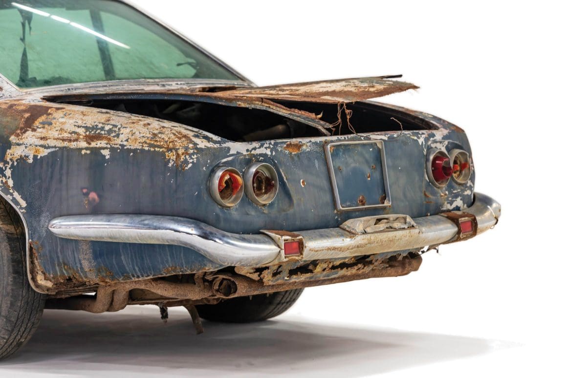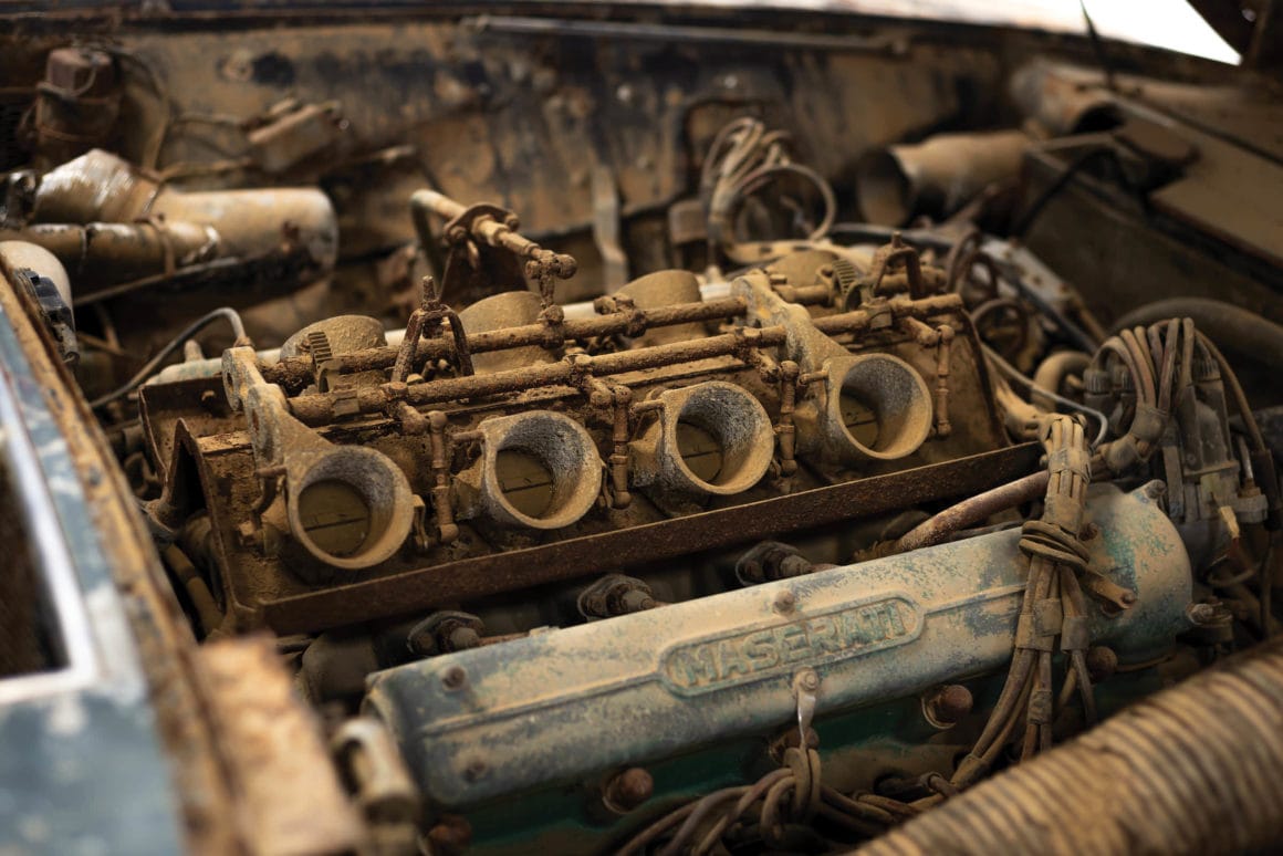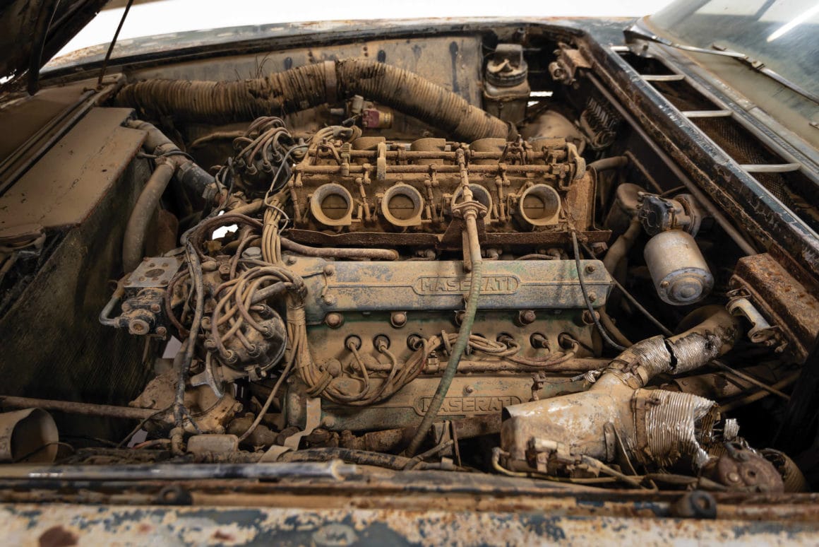Cette présentation étant écrite comme Evangile à croire sous peine d’excommunication, Sotheby’s s’est laisser-aller à décrire l’épave de la Maserati 5000 GT, châssis 018-AM103, indiquant, qu’en tant que “vraie” automobile (avant de devenir une épave), a été achevée en juillet 1961 comme neuvième exemplaire construit, précisant pour faire monter la sauce que la plupart des 5000 GTs avaient été construites avec une carrosserie Allemano, mais que cette 018-AM103 était le seul exemple disposant d’une carrosserie Ghia.