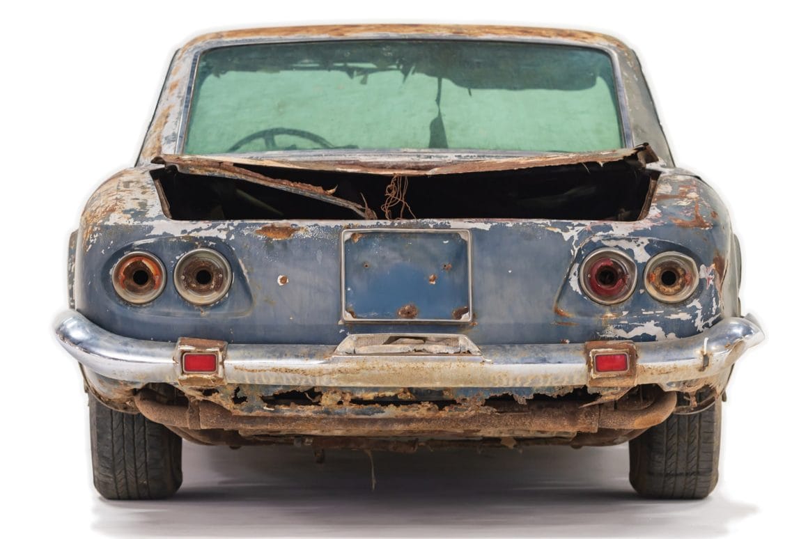 Bien que tannée, a jamais vandalisée, démontée et dépouillée de ses pièces essentielles, n’ayant à offrir que les vestiges de sa moche peinture mi-argentée mi-bleue, cette épave, présentée comme une œuvre d’art, dont le pneu de secours non utilisé est toujours dans le coffre, soulignait que l’odomètre (à 5 chiffres) indiquait 15.561 kilomètres… Elle a été vendue, c’est-à-dire achetée, pour un peu plus d’un million d’euros, démonstration parfaite que l’imbécilité humaine est sans limite !