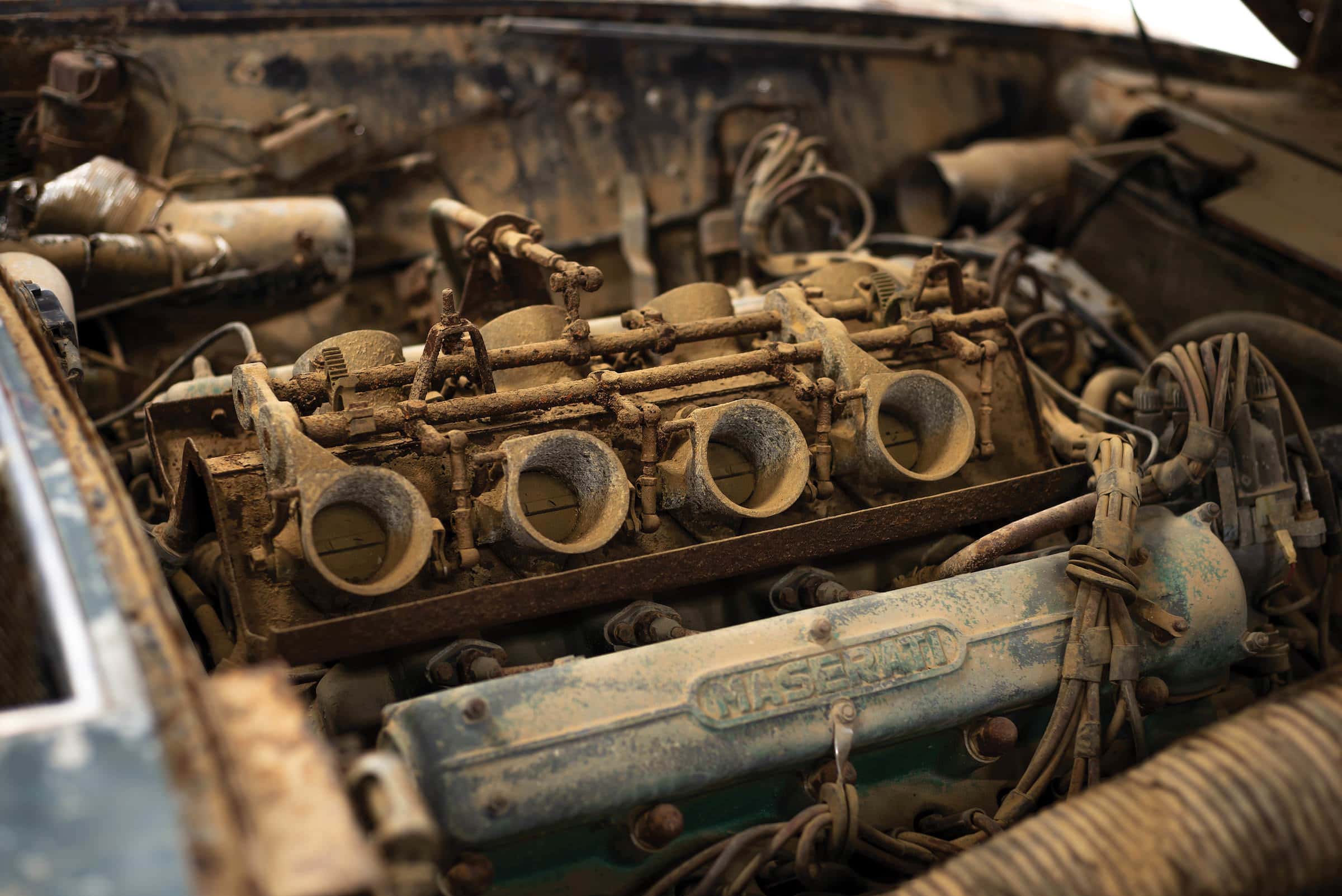 Pour parfaire, Sotheby’s a commandé la réalisations de photos artistiques de l’épave pour publier dans son catalogue hyper-luxe et a ajouté dans la mise en page très chic & classe, des vieilles photos “magnifiques” d’époque dans sa combinaison de couleurs originales allant de l’argenté au noir, via une “rare” photo de haute qualité en couleurs-de-luxe, le tout assorti des extraits d’un article “farde de presse” publié il y a longtemps dans Sport Car Graphi, un essai routier à grande vitesse (gag !) dans leur numéro de janvier 1962 ou le vénérable journaliste écrivait : “Nous nous sommes retrouvés collés à nos sièges par la formidable accélération comme se trouve uniquement dans les voitures de course… J’ai conduit beaucoup de voitures rapides avant, mais jamais senti un tel pouvoir de rouler si vite, si vite en effet que lorsque je suis passé de la 3e à la vitesse supérieure sur la première ligne peu droite, j’ai trouvé que la voiture faisait déjà 135 mph ! La Maserati a couvert un kilomètre vent debout en 26,6 secondes à 135 km/h, le sprint le plus rapide imaginable”… Un style totalement “lampiste” et “ampoulé” que seuls de grands journalistes comme Sergio Bellâtre étaient capables de soutenir quand ils le pouvaient encore, dans une course infernale aux nombres de signes payés à-la-pige, en réalité c’est Mr Innocenti en personne qui avait pris possession de cette voiture quasi invendable en contre partie de ce que Ghia lui devait… et qui a par la suite vendu la voiture sur le marché de l’occasion pour un prix minable !