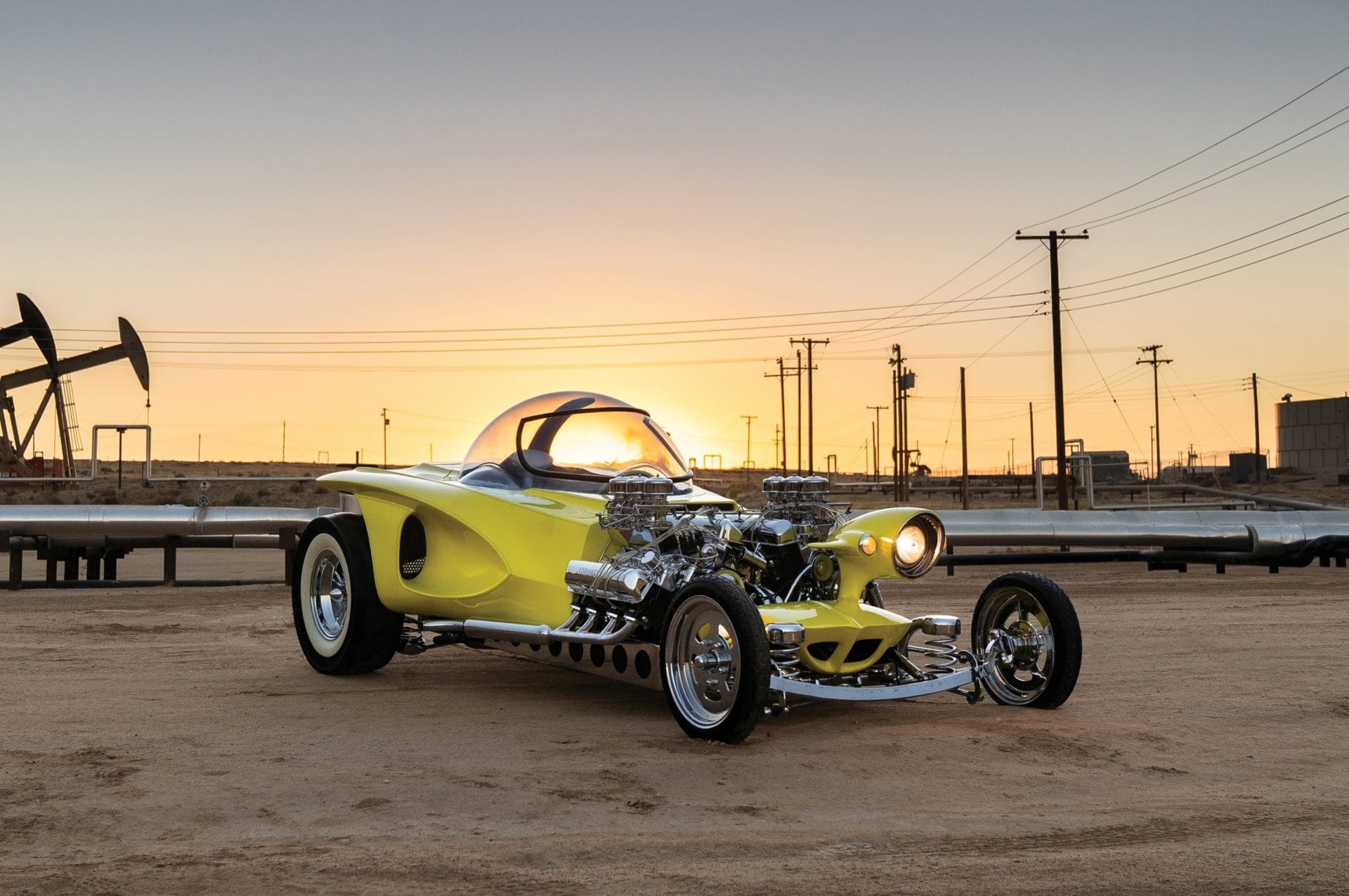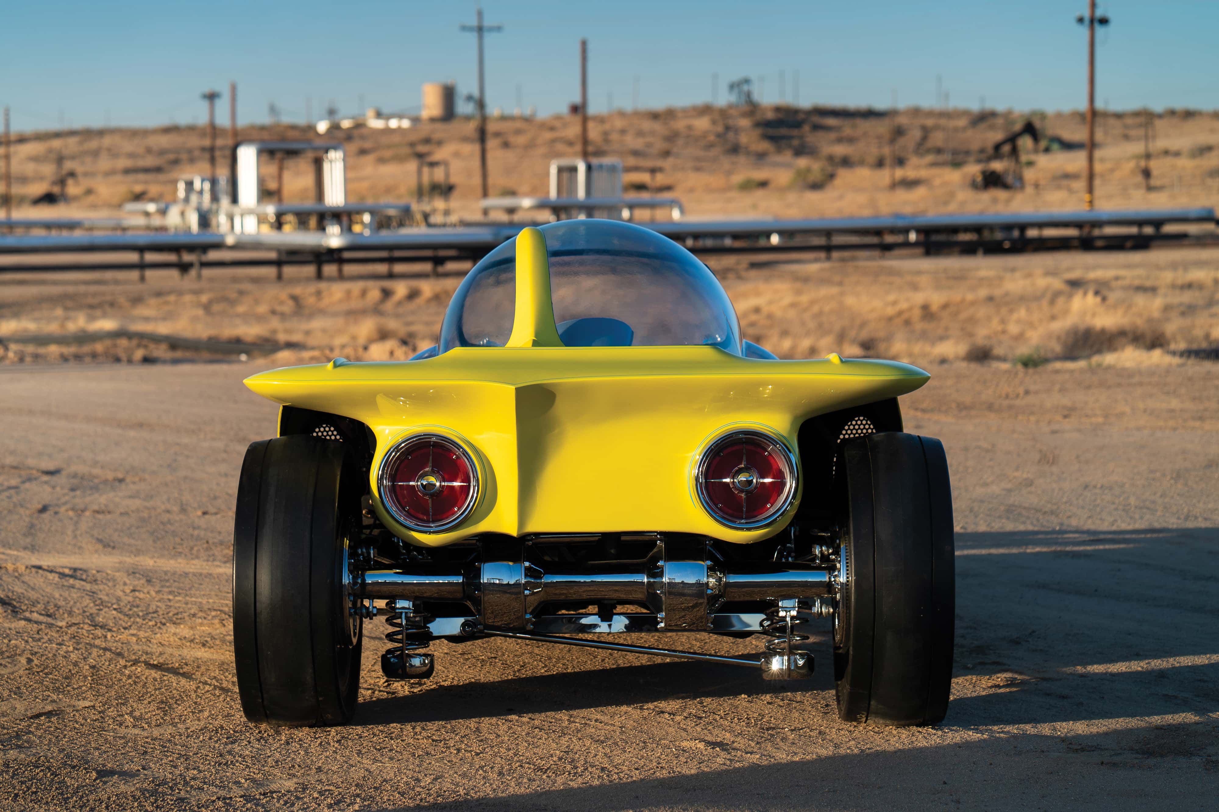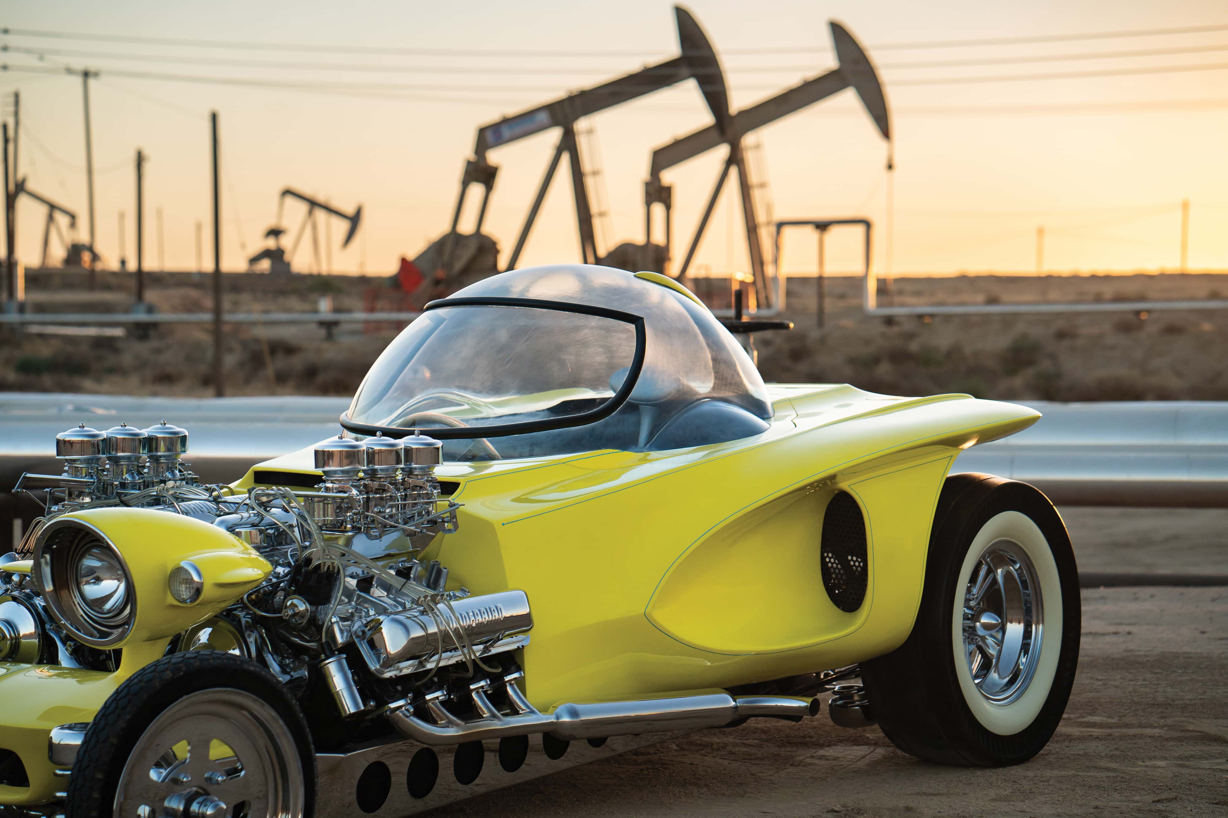 Le premier Hot-Rod de Ed Roth qui a attiré une attention considérable a été un roadster futuriste comme venu de l’espace, appelé “Beatnik Bandit”, un fantasme peint par Joe Henning…, qui, selon l’auteur et biographe de Ed Roth, Pat Ganahl, a dit qu’il voulait quelque chose de “far-out”.
