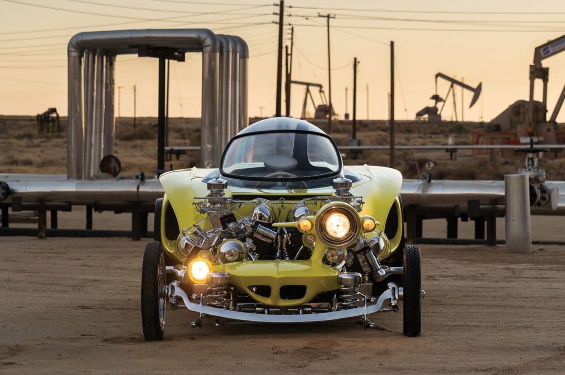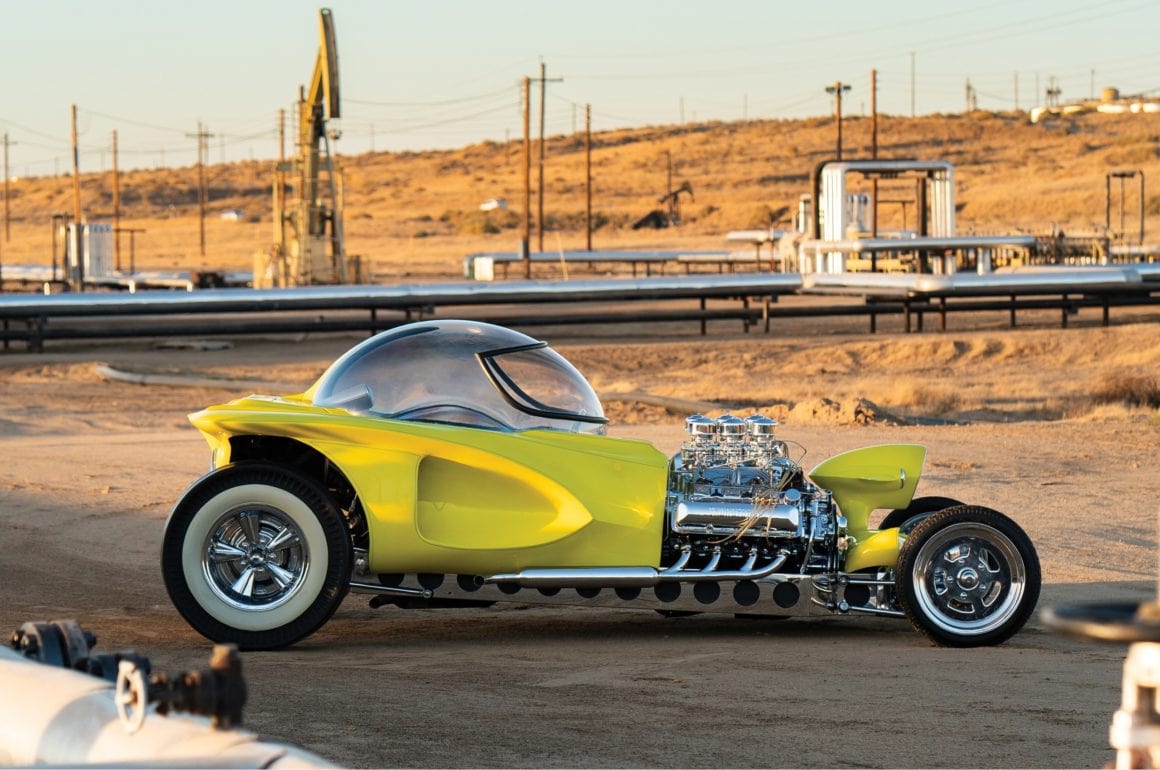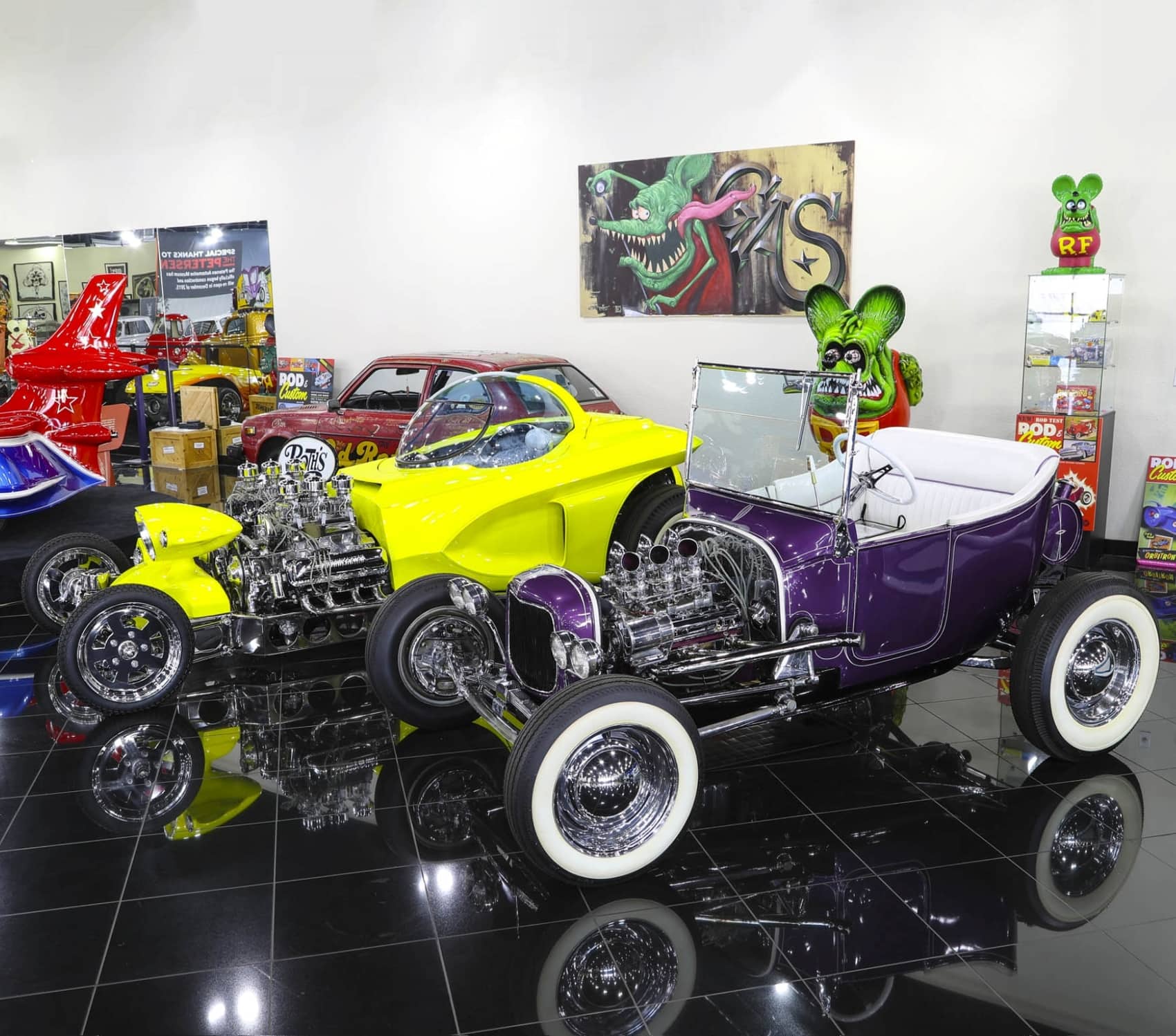 Ce furent donc plusieurs décennies tumultueuses et hyper rentables…, Ed Roth va devenir multi-millionaire et va ainsi construire toute une série de créations sauvages…, des Hot-Rods et Kustom-Cars utilisant de nouveaux matériaux, avec des formes magnifiques, des couleurs sauvages et des moteurs complexes lui permettant d’élever les modifications à un niveau artistique jamais vu auparavant…, certains Hot-Rods “one-offs” sont ensuite devenus des œuvres d’art inoubliables dont beaucoup survivent dans des musées et collections privées.