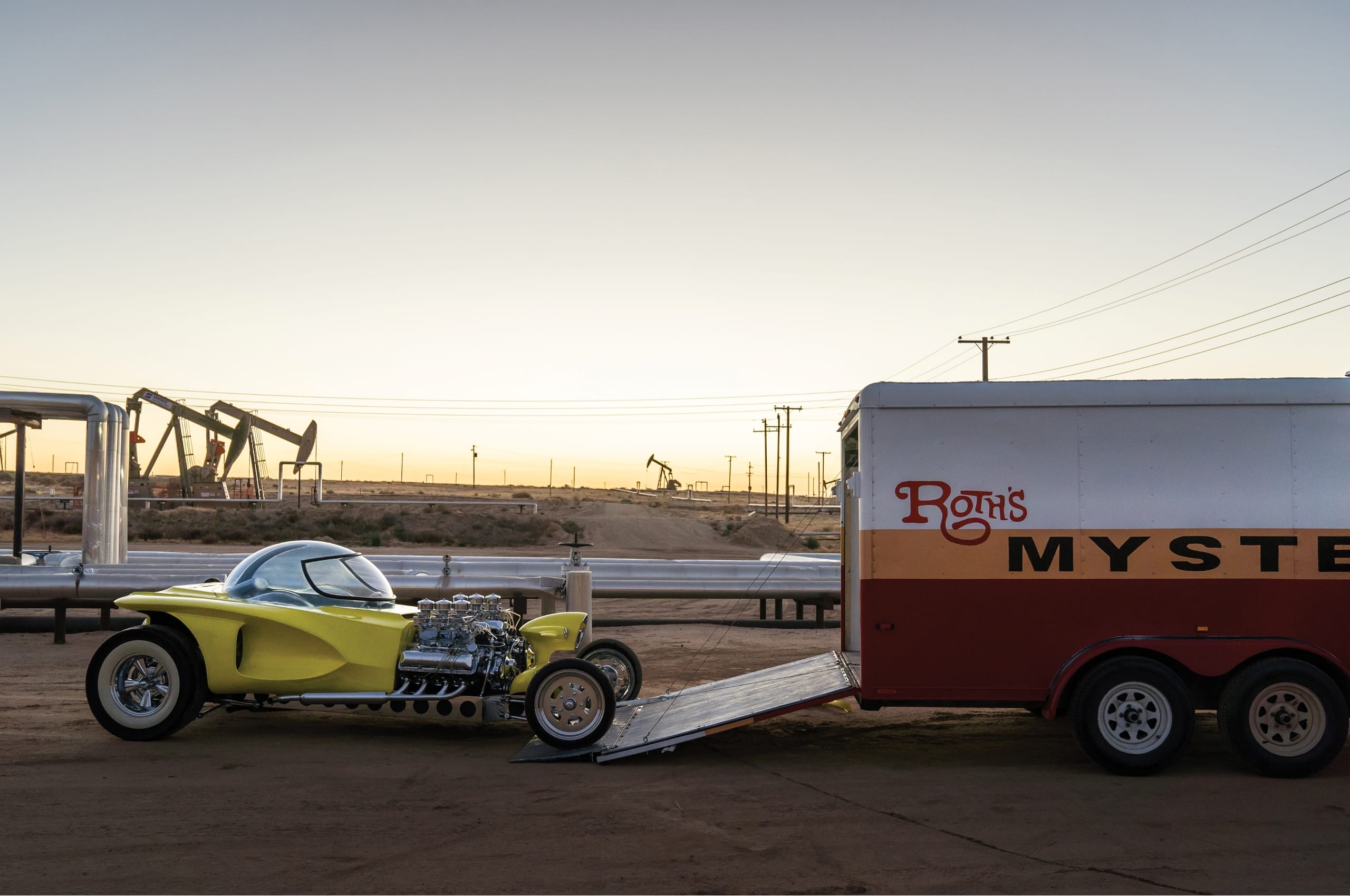 Toutefois, après de nombreuses apparitions, la “Mystérion” de Ed Roth a disparue et n’a jamais été retrouvée…, on dit qu’elle se trouve dans le garage secret d’un fanatique de Hot-Rods en Californie…, et c’est Jeff Jones, un ingénieur multimillionnaire grâce au pétrole… et admirateur de Ed Roth…, qui a décidé de se faire construire une réplique exacte de la “Mystérion”…
