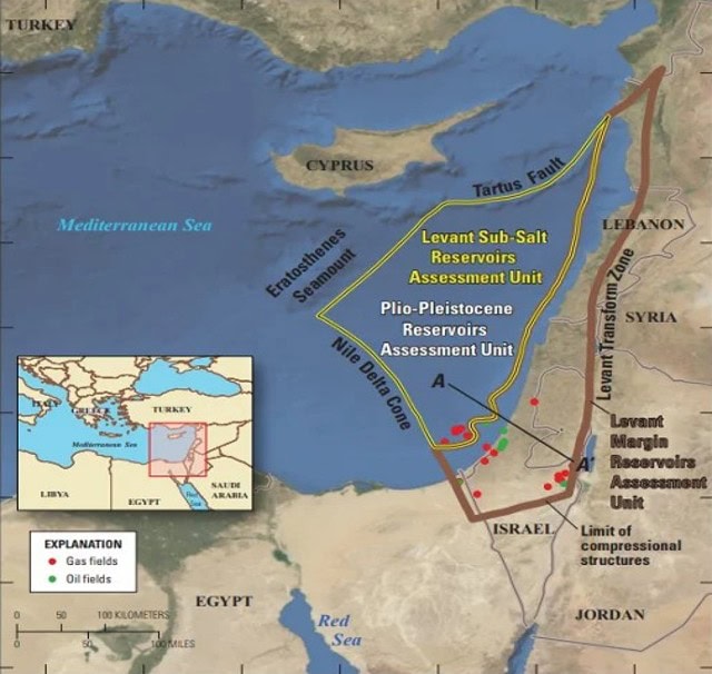 Ces deux illustrations de la Zion Oil & Gaz Co vous montrent le pourquoi du Génocide à Gaza destiné à laisser les champs gaziers et pétrolifères libres d’exploitation, sans devoir payer d’indemnités aux Palestiniens qui occupent (légalement) leurs territoires qui sont situés sur les points rouges et verts et les zones d’extractions en eaux territoriales Palestiniennes qu’Israël a décidé d’exploiter sans partage depuis les confrontations y relatives à l’époque de Yasser Arafat. Comme cette zone inclus les eaux territoriales du Liban et au delà en Syrie, ces deux pays sont également envahis.