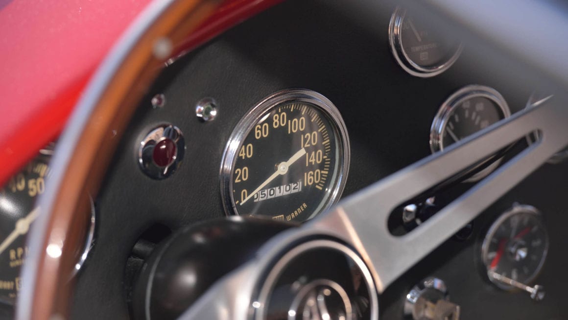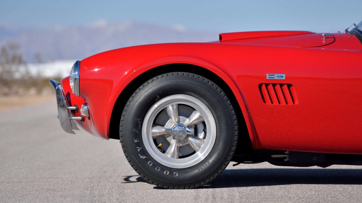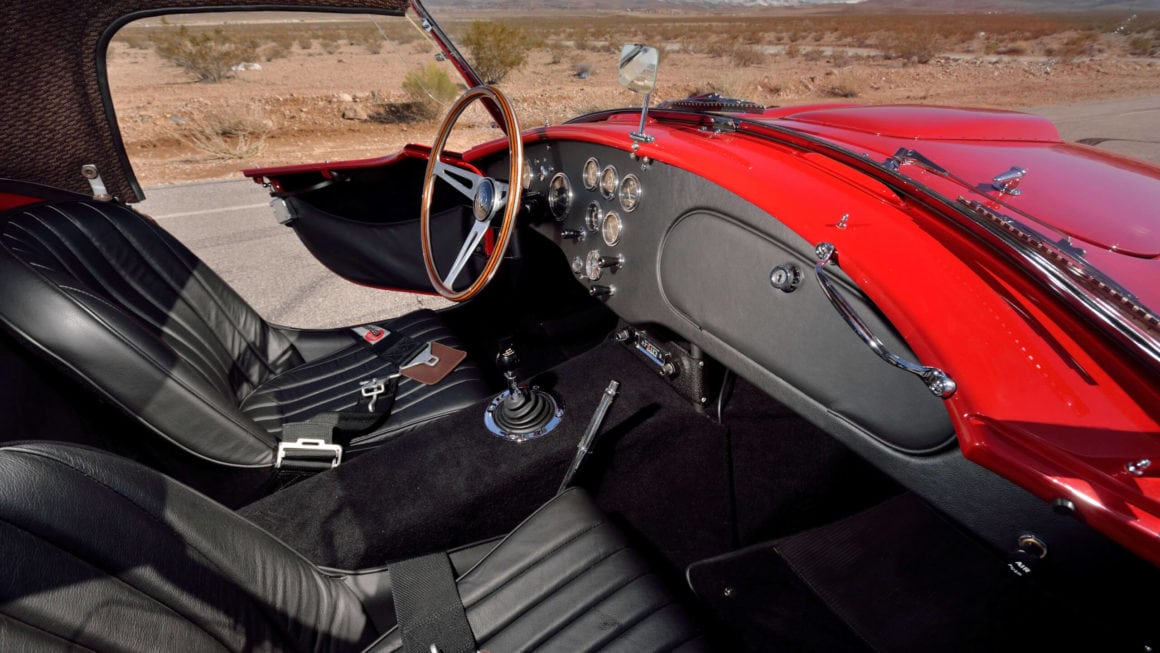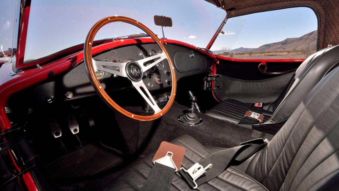 La facture datée du 6 août 1964 énumérait une prise d’air de dessus de capot en aluminium, un refroidisseur d’huile moteur, jes jantes American Racing en magnésium, un entourage de calandre et des pare-chocs avant et arrière, des visières solaires, barres anti-roulis, des vitrages latéraux souples, un chauffage, des ceintures de sécurité, une radio avec antenne, un système d’échappement personnalisé qui réacheminait les gaz d’échappement sous la voiture avec les quatre tuyaux se terminant par des finitions chromées… ces articles, ainsi qu’une charge de fret de 200 $ pour l’expédition de Shelby American à Los Angeles au garge Ford de Frye, amenaient la facture à un total à couper le souffle (à cette époque) de $ 8,684.05.