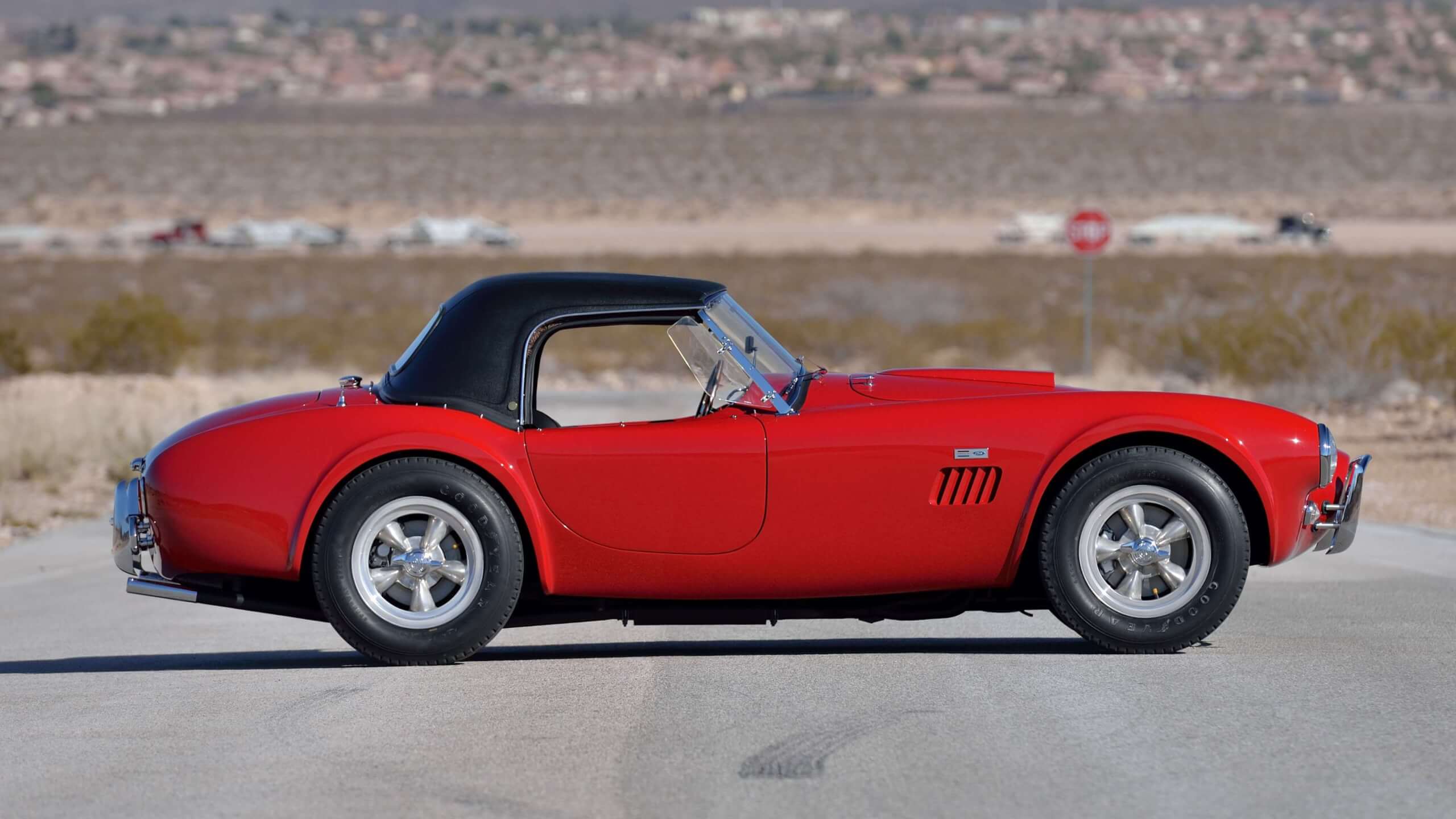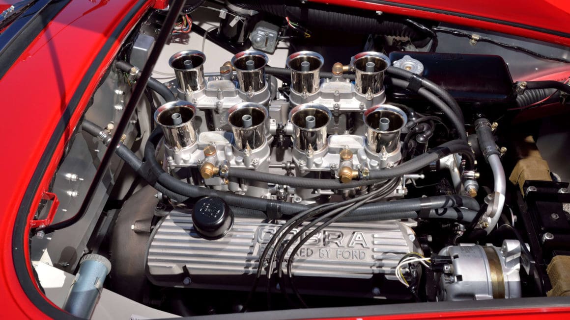 Aux USA l’ambiance était tout autre entre gens “du même monde”… et chez Barrett-Jackson, la vraie authentique1964 Shelby Cobra Stage 289 typeIII Street Roadster… m’est apparue telle le Saint-Graal… c’était l’une des plus fabuleuses jamais construite par Shelby American, elle avait été commandé par Frye Ford de Belleville, Kansas, spécifiant le maximum d’options possibles, ce qui avait rempli de bonheur le département comptable de Shelby, qui, énumérant chaque article a pu justifier un montant stupéfiant pour cette époque) de $8,684.05 dans le registre de la société… CSX2416 avait été commandée d’usine en “Princess Blue” avec un intérieur noir, la liste d’extras optionnels a commencé avec un stade III, c’est-à-dire un V8 Small Bloc 289ci monté avec quatre carburateurs Weber “downdraft”, ajoutant ainsi un supplément de 2,595 $ au prix de base de la voiture, soit 5,195 $ (moins un crédit de 608 $ pour le moteur 289ci standard)…