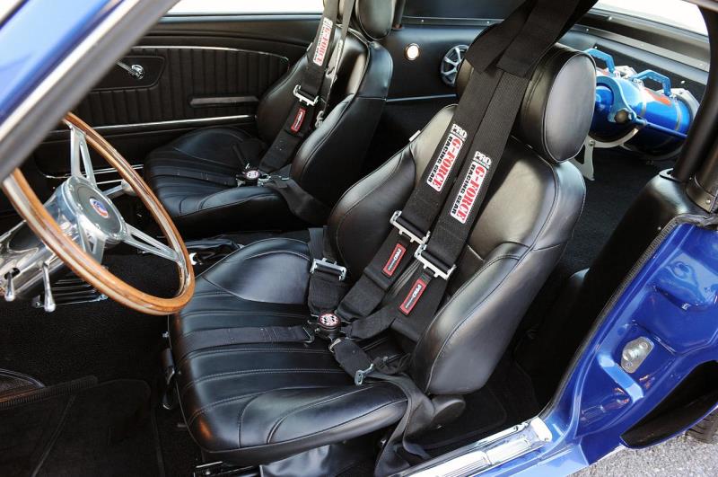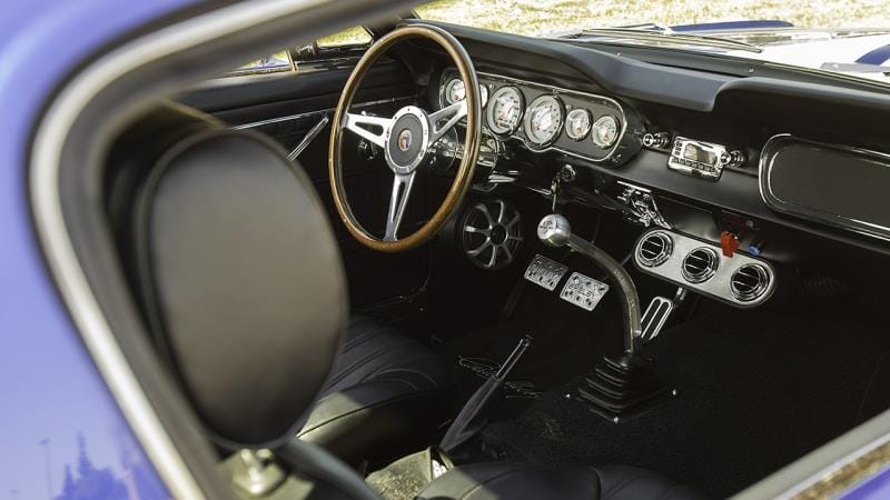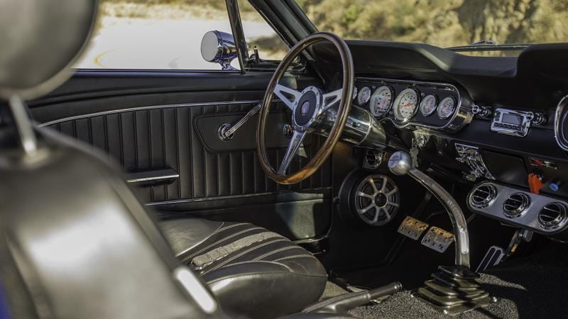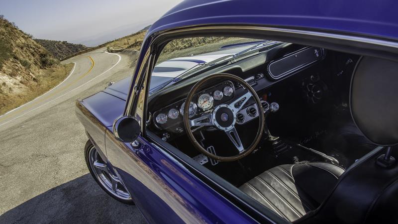 La Mustang Fastback 1965, devenue GT350CR, combine un style classique intégrant des éléments et des équipements modernes telles qu’une direction à crémaillère, une suspension réglable Coilover et des freins à disques de 13 pouces à l’avant (Shelby / Wilwood) et de 12 pouces à l’arrière, combinés à des étriers à quatre pistons.